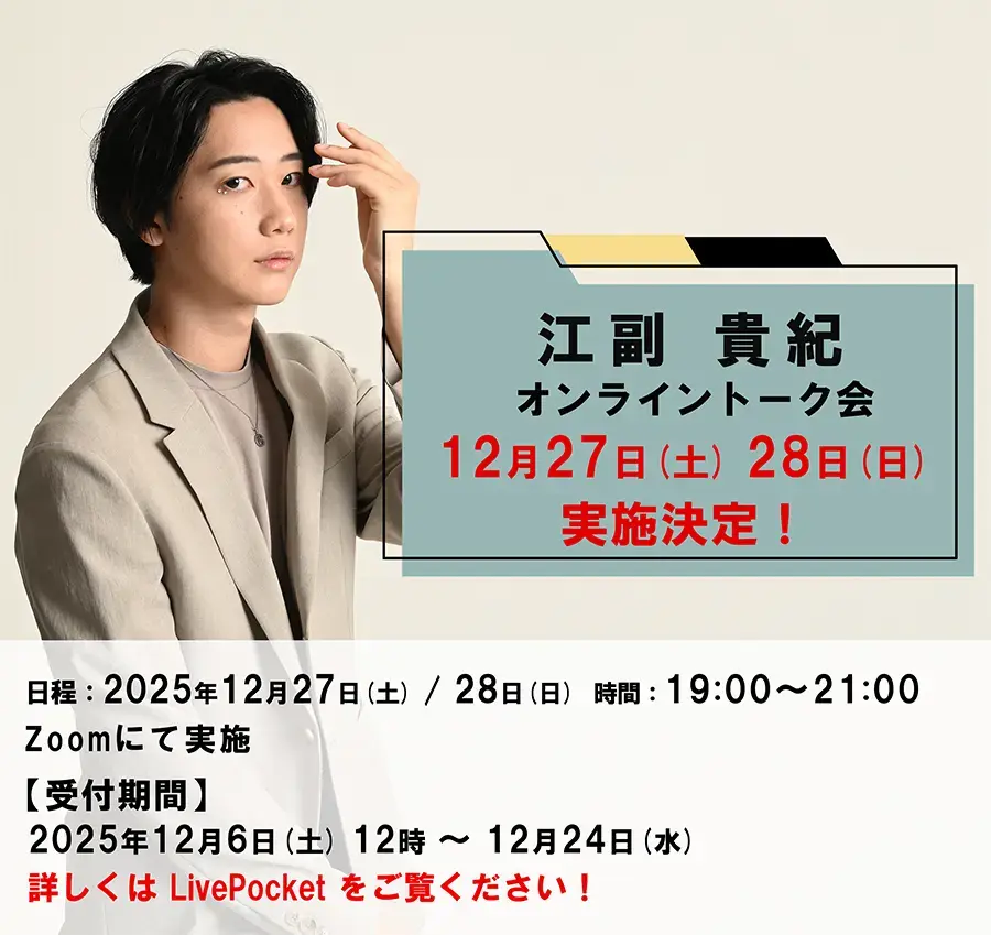 江副貴紀オンライントーク会 12月27日(土) ②20:00~21:00