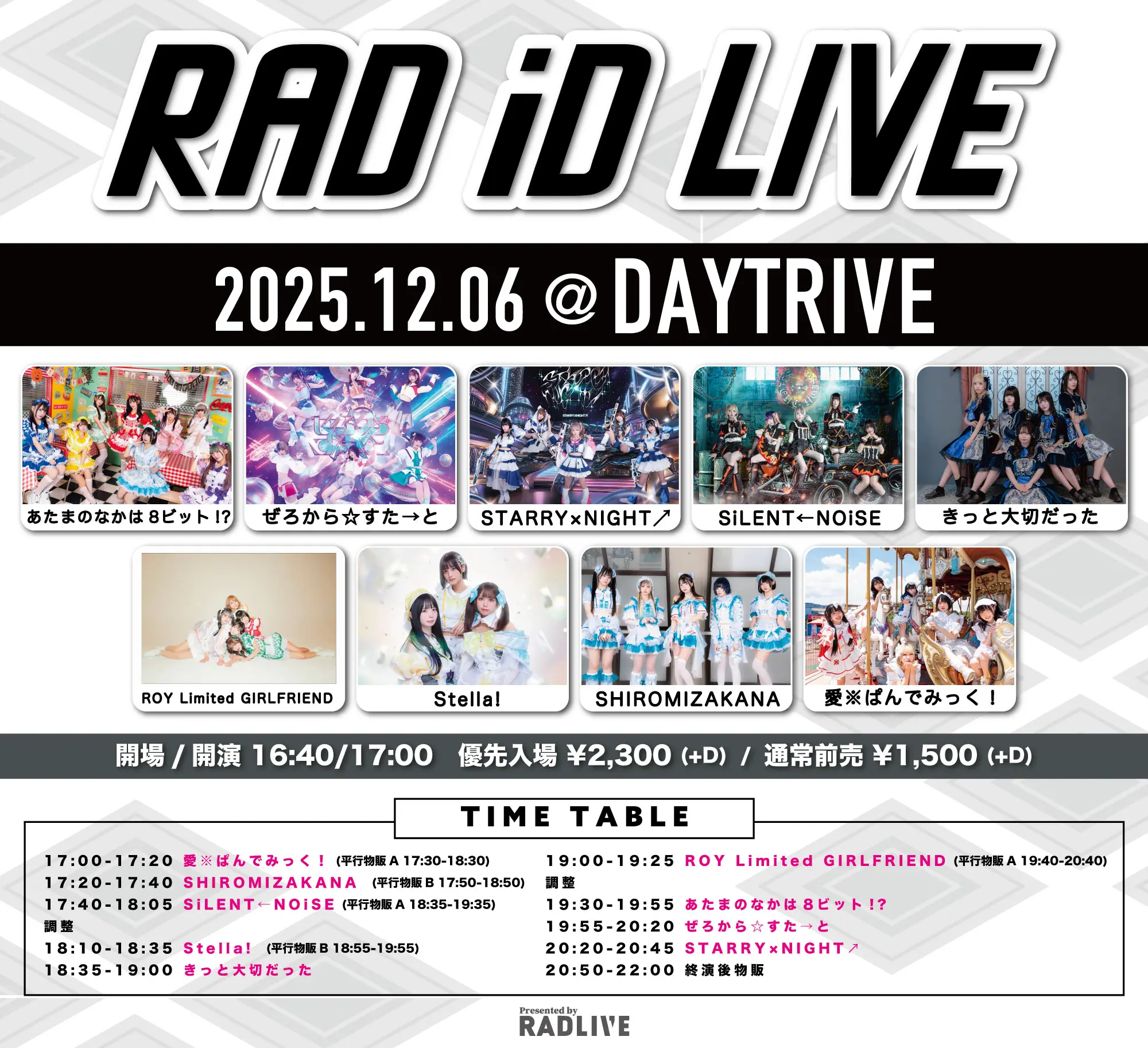 出演者 ROY Limited GIRLFRIEND / SHIROMIZAKANA / きっと大切だった / Stella! / 愛※ぱんでみっく! / あたまのなかは8ビット!? / ぜろから☆すた→と / SiLENT←NOiSE / STARRY×NIGHT↗︎
