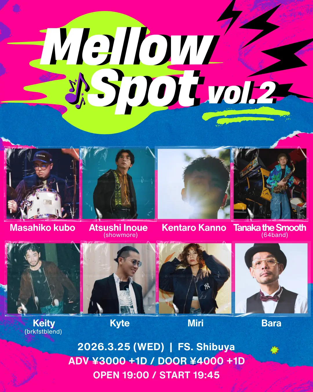 出演者 久保正彦 / カンノケンタロウ / 井上惇志 / Tanaka the Smooth / Keity / Miri / Bara / Kyte