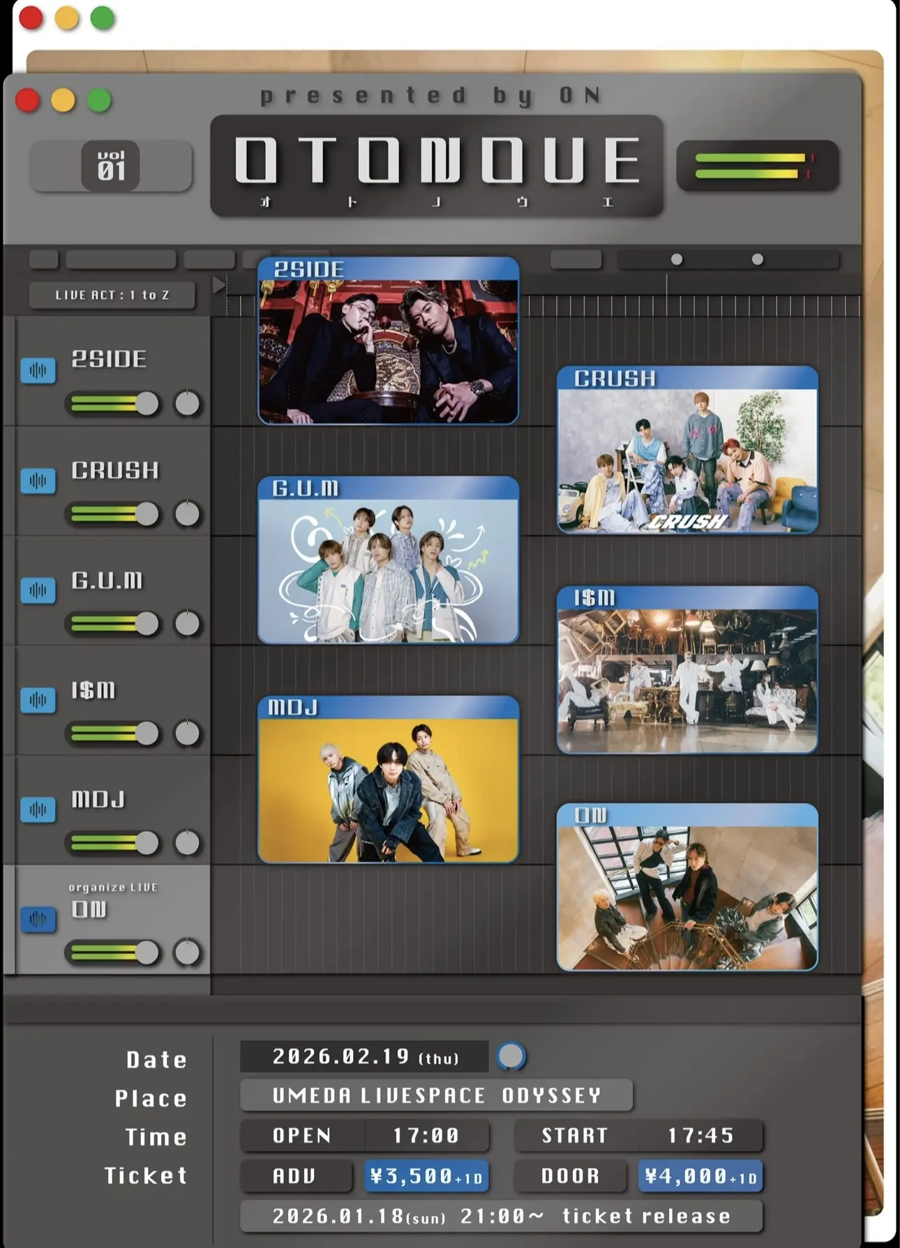 出演者 ON / MDJ / 2SIDE / G.U.M / CRUSH / I$M