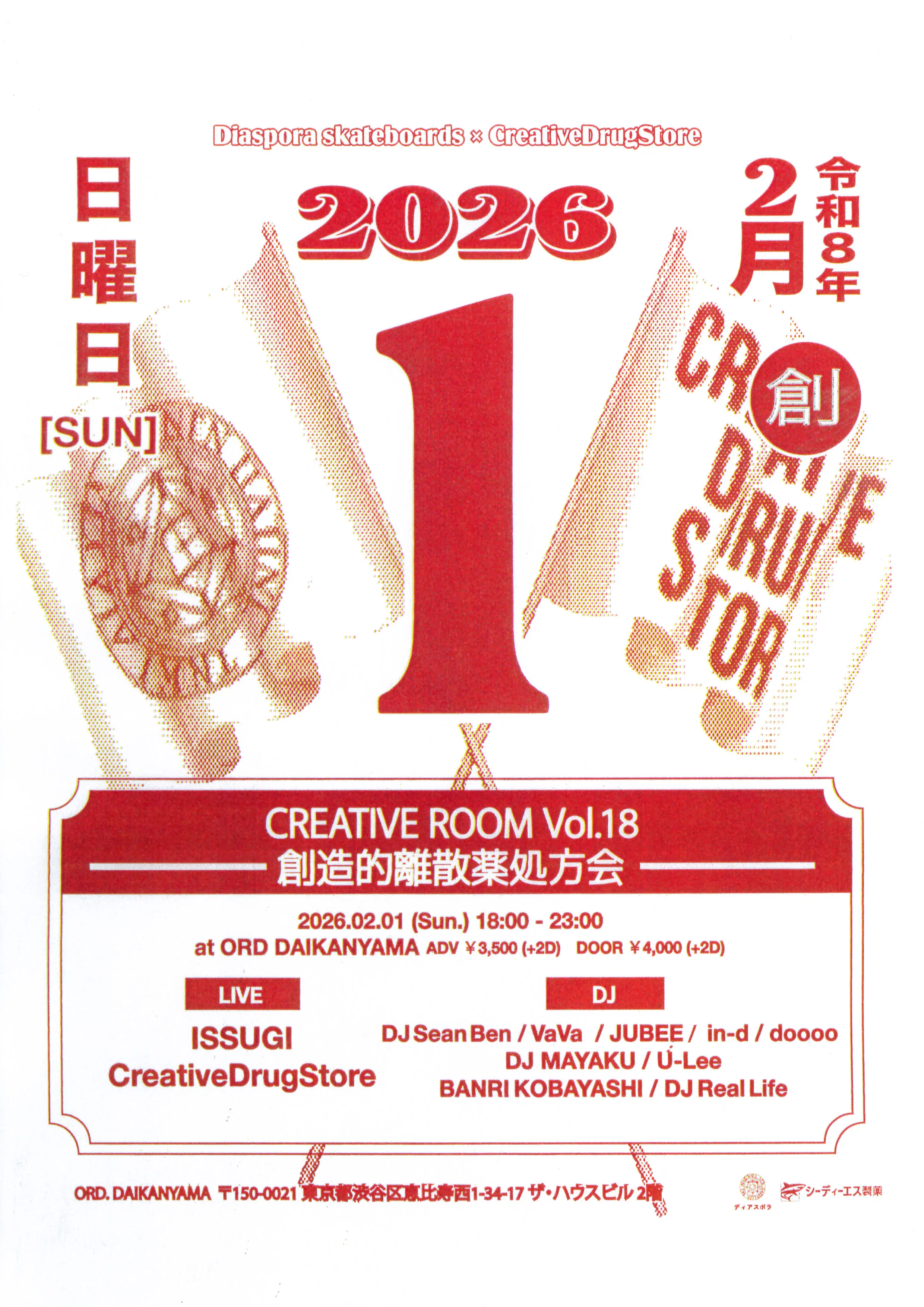 CREATIVE ROOM Vol.18 創造的離散薬処方会 CreativeDrugStore × Diaspora skateboards