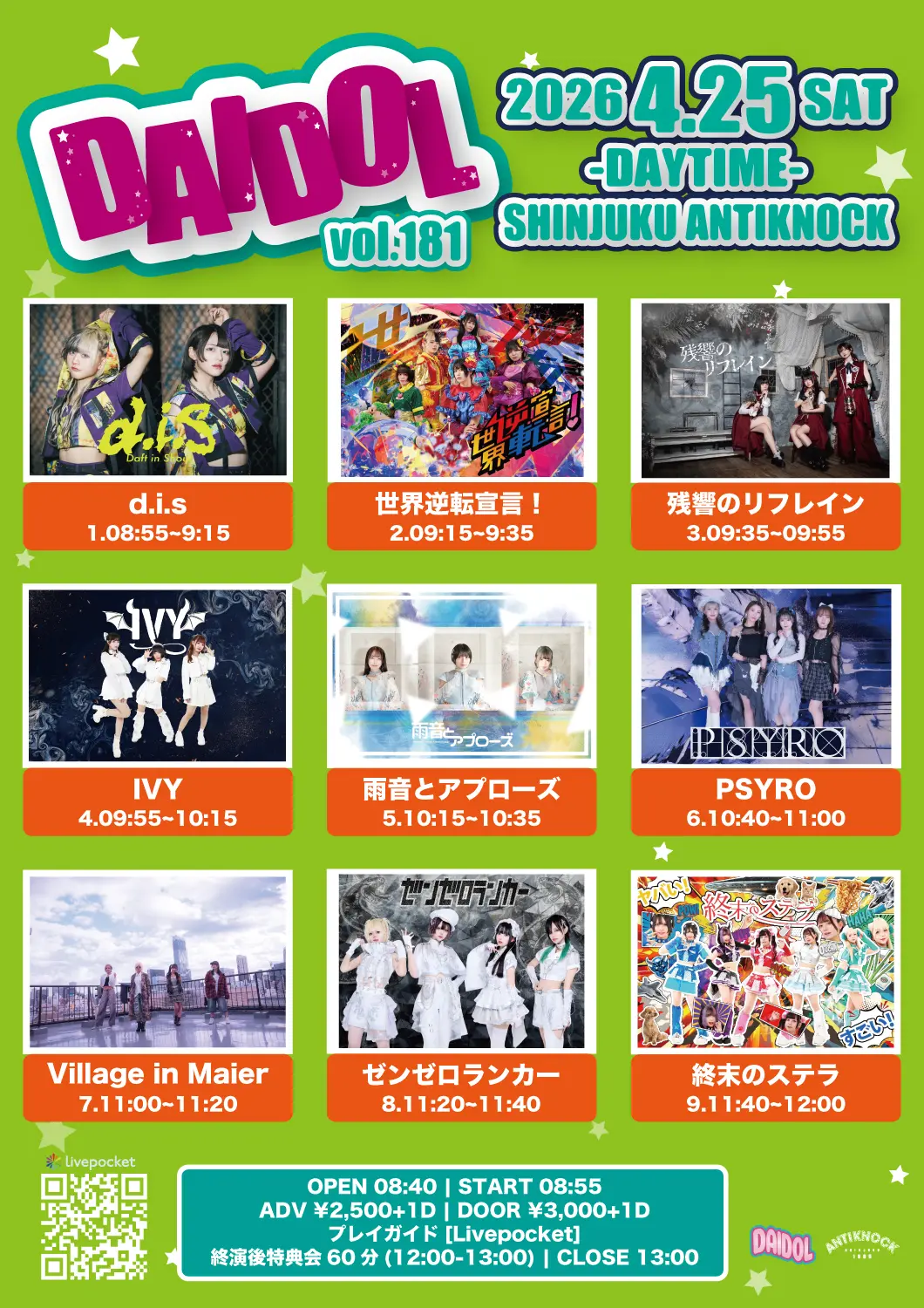 出演者 残響のリフレイン / 雨音とアプローズ / 世界逆転宣言! / ゼンゼロランカー / Village in Maier / IVY / PSYRO / 終末のステラ / d.i.s