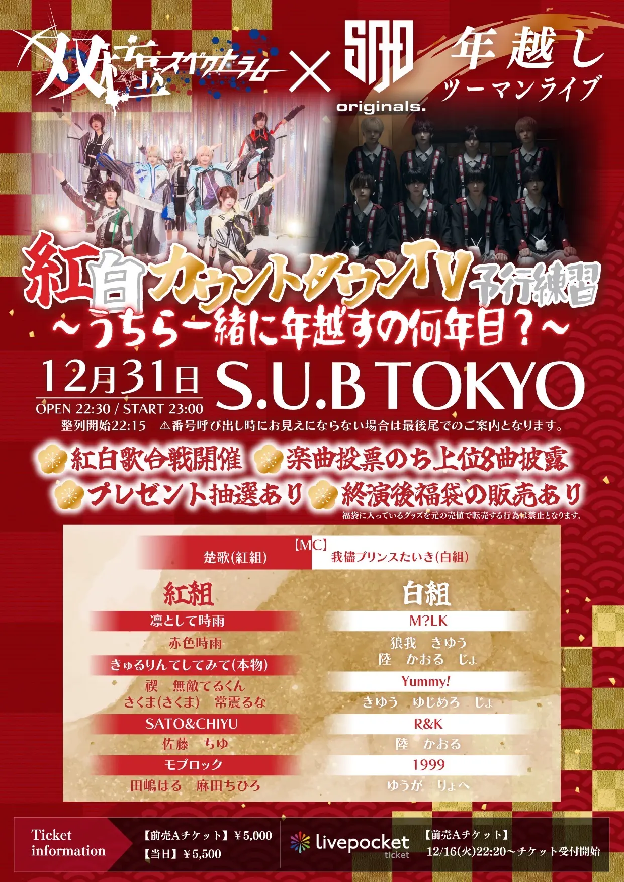 双極スペクトラム×SAD originals.年越しツーマンライブ『紅白カウントダウンTV予行練習〜うちら一緒に年越すの何回目?〜』