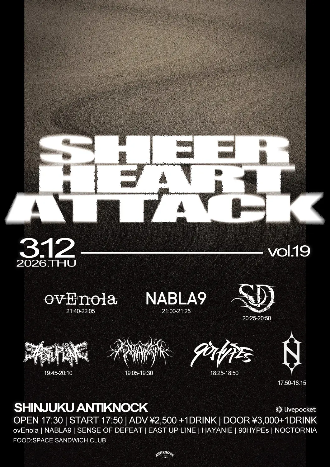 出演者 ovEnola / NABLA9 / HAYANIE / EAST UP LINE / SENSE OF DEFEAT / NOCTORNIA / 90HYPEs