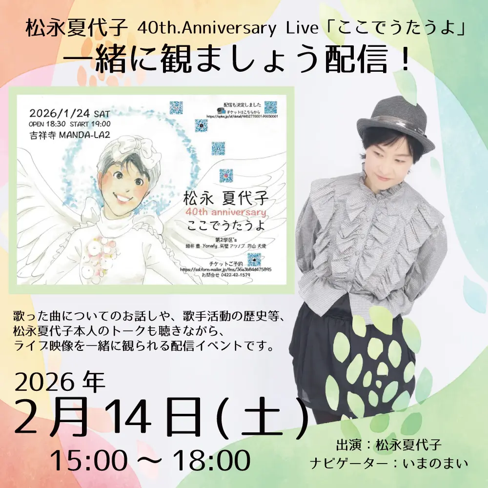 松永夏代子 40th.Anniversary「ここでうたうよ」 一緒に観ましょう配信!