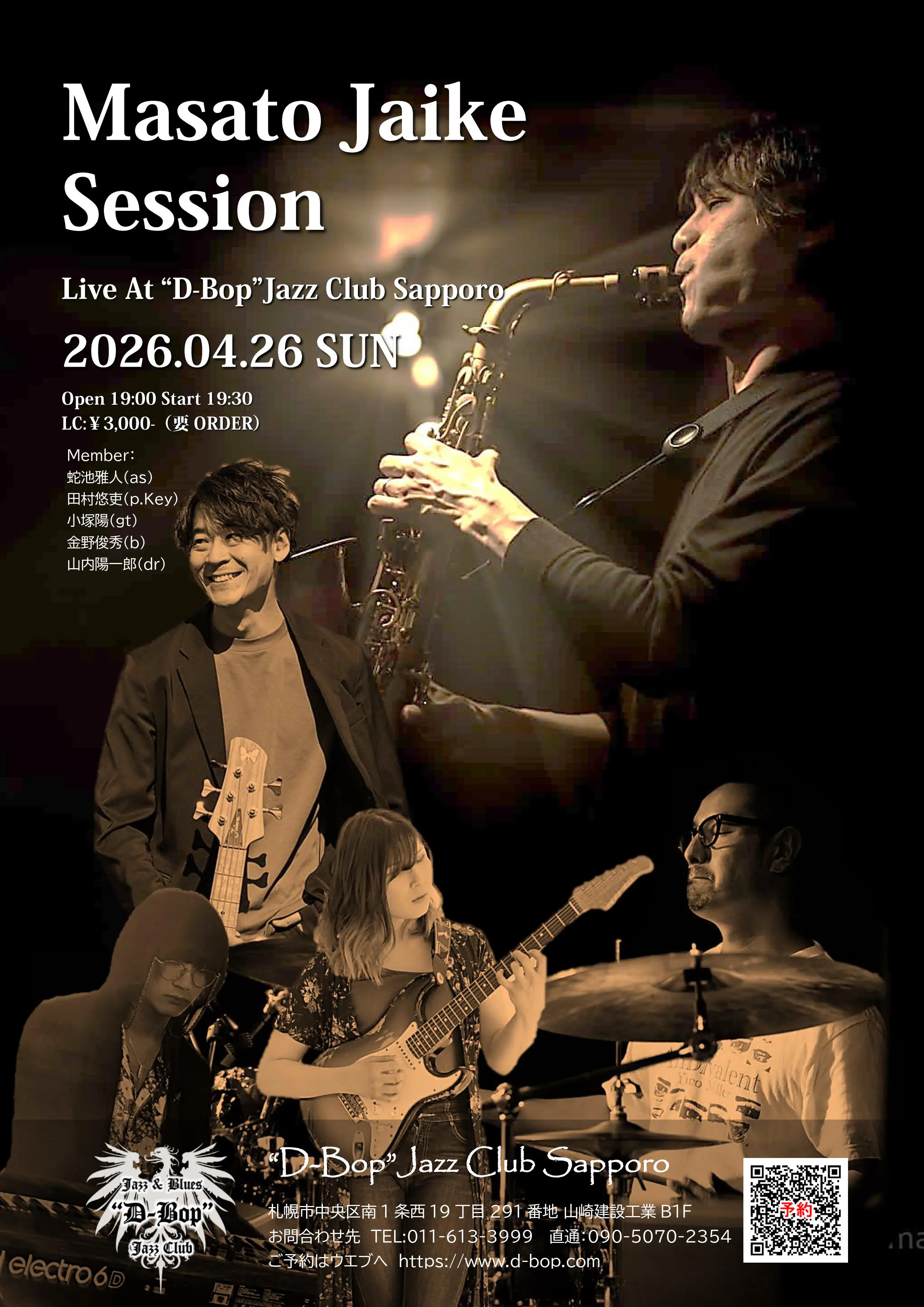 出演者 蛇池雅人(as) / 田村悠吏(p.Key) / 小塚陽(gt) / 金野俊秀(b) / 山内陽一郎(dr)