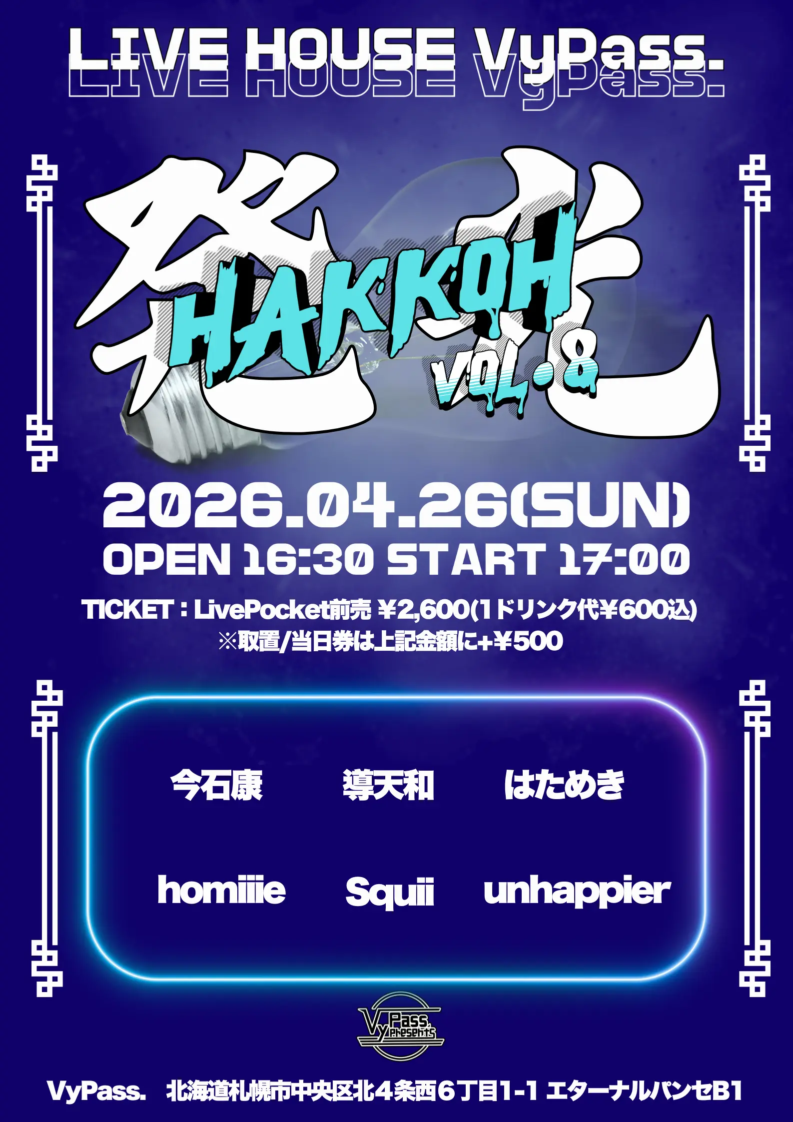 出演者 今石康 / はためき / 導天和 / homiiie / unhappier / Squii