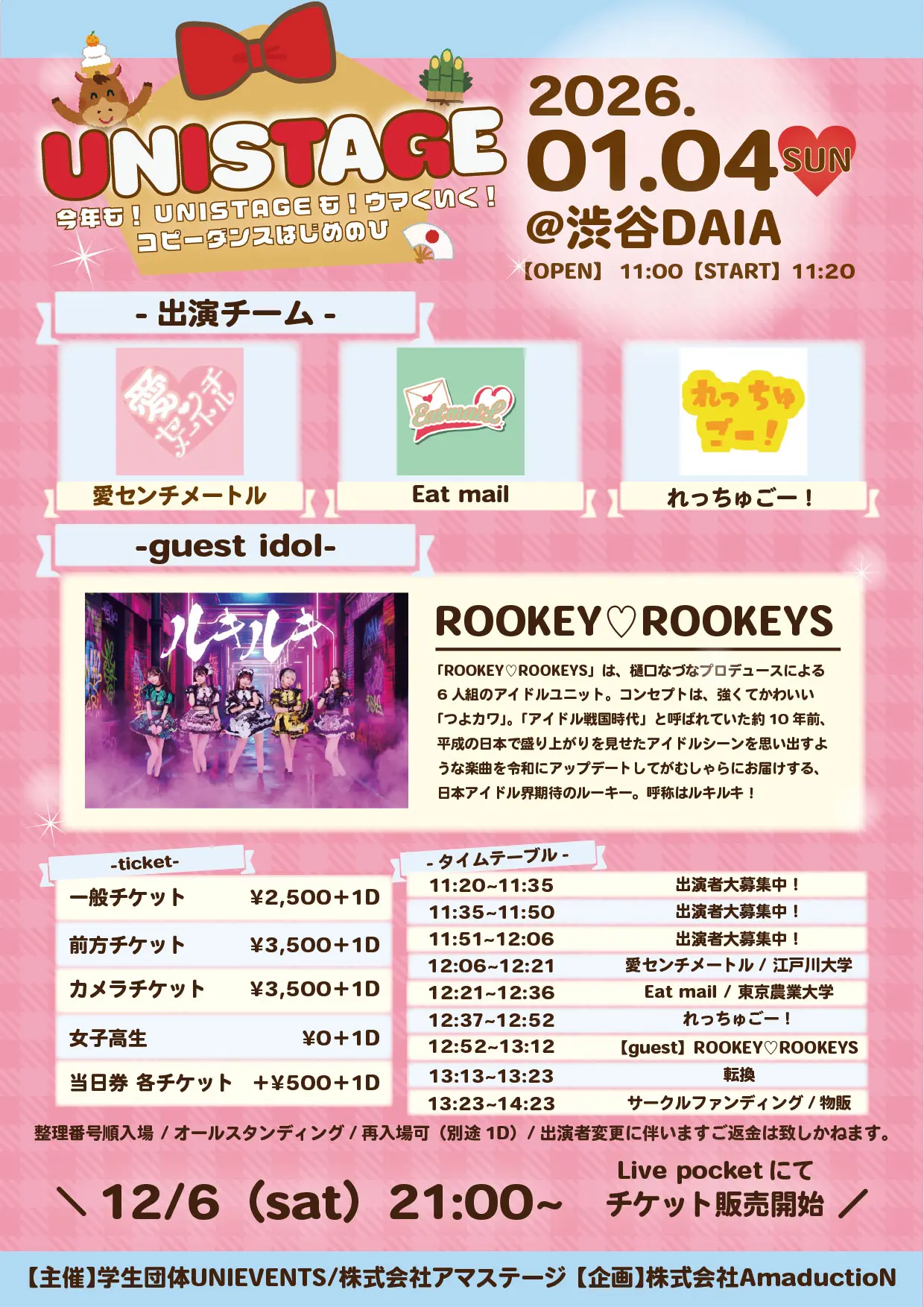 出演者 愛センチメートル / 江戸川大学 / Eat mail / 東京農業大学 / れっちゅごー! / ROOKEY♡ROOKEYS