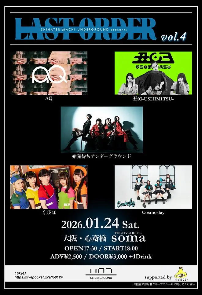 出演者 AQ / 丑03-USHIMITSU- / くぴぽ / Cosmoslay / 始発待ちアンダーグラウンド