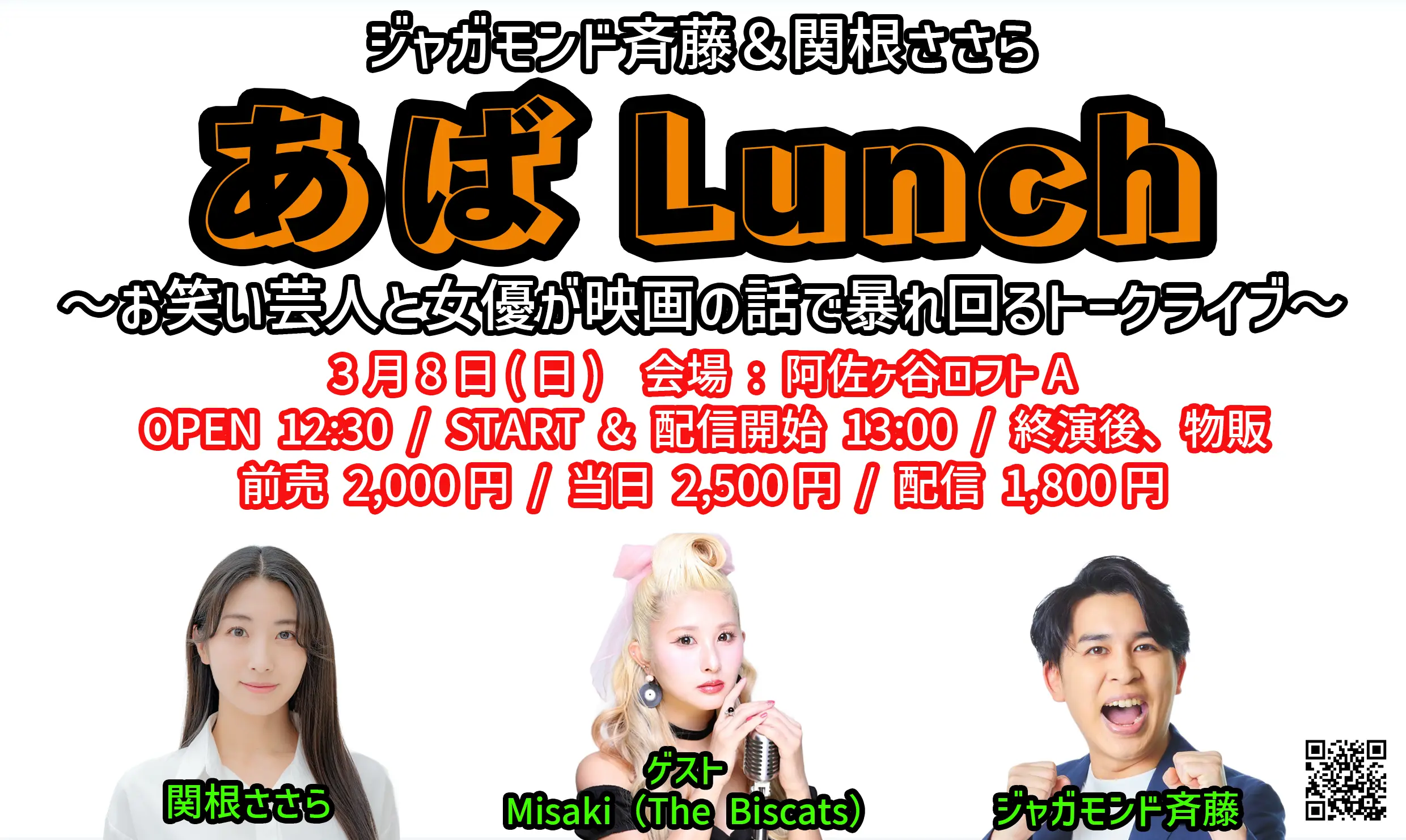 ジャガモンド斉藤&関根ささら『あばLunch』〜お笑い芸人と女優が映画の話で暴れ回るトークライブ〜