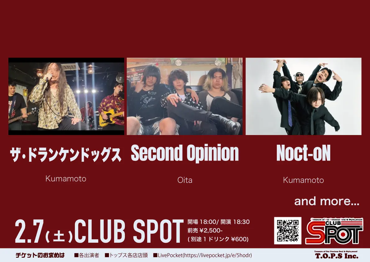 ■出演 ザ•ドランケンドッグス(熊本)・Second Opinion・Noct-oN(熊本)