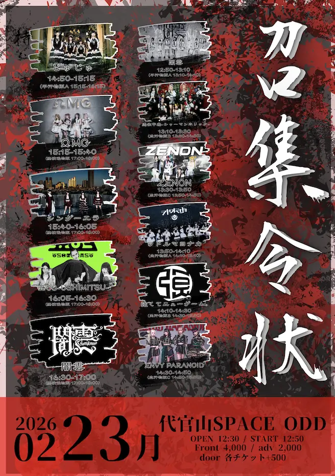 出演者 闇雲 / じゅじゅ / シンダーエラ / 強くてニューゲーム。 / ZENON / 憑依中毒-シャーマンホリック- / ENVY PARANOID / ヲドルマヨナカ / ΩMG / 丑03-USHIMITSU-