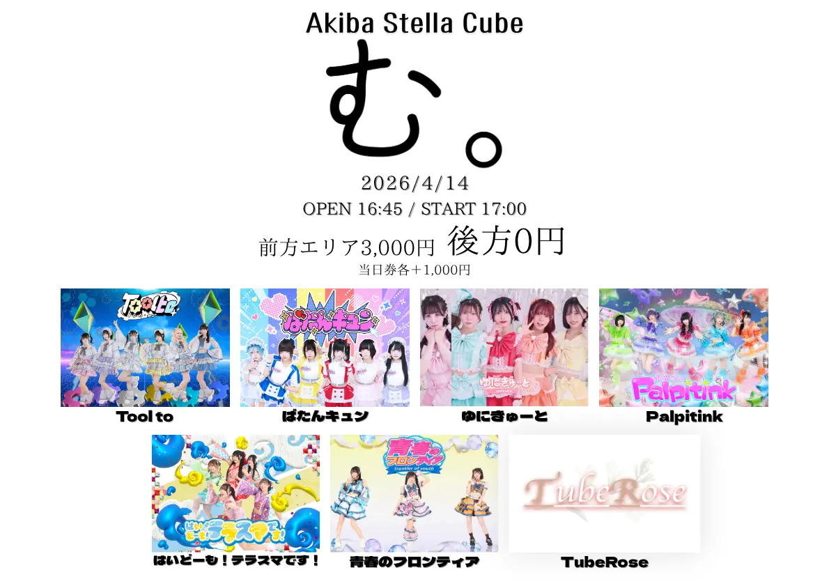 出演者 Tool to / はいどーも!テラスマです! / Palpitink / 青春のフロンティア / ゆにきゅーと / ばたんキュン / TubeRose