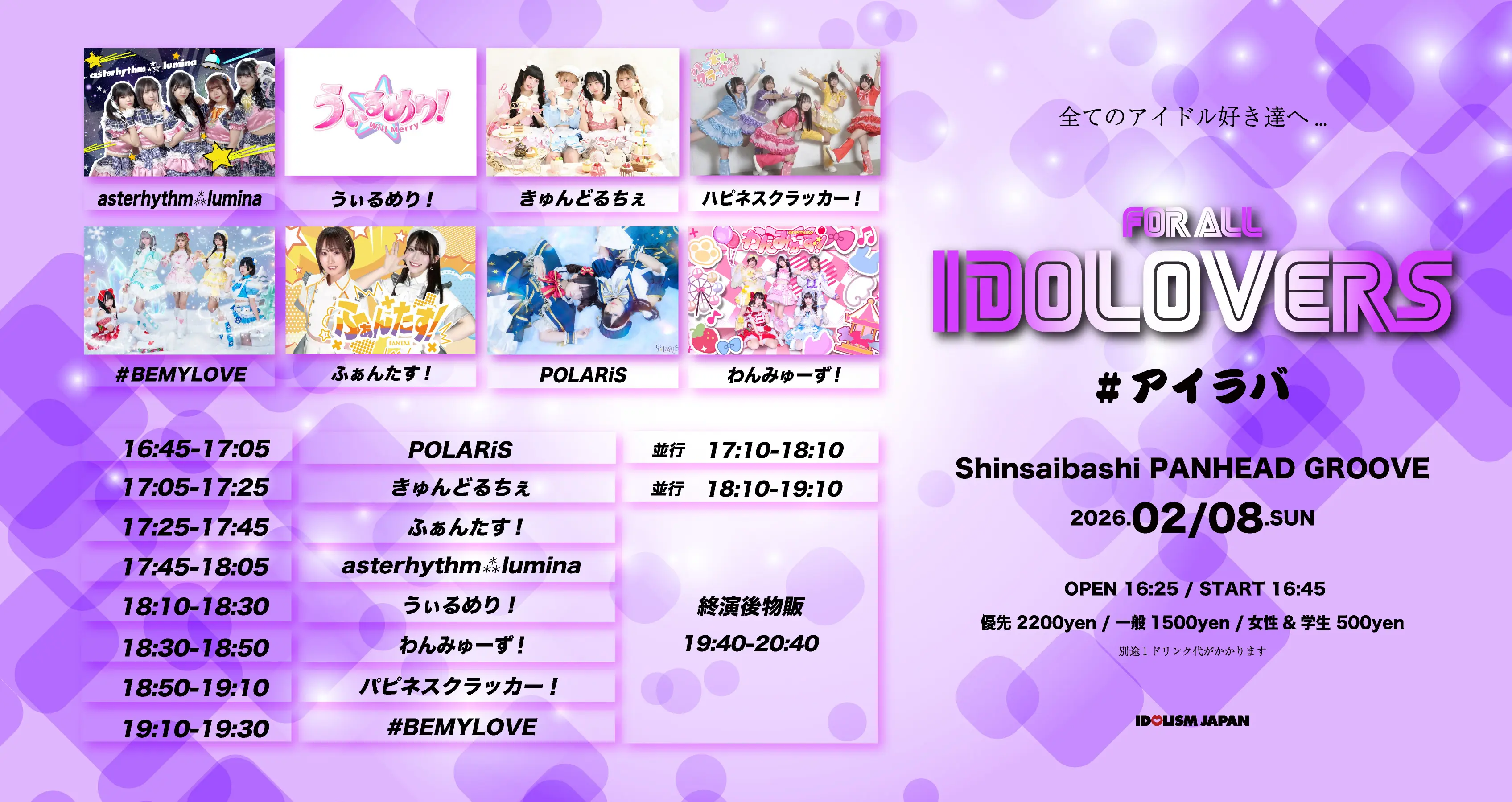 出演者 ふぁんたす! / #BEMYLOVE / うぃるめり! / ハピネスクラッカー! / きゅんどるちぇ / POLARiS / asterhythm⁂lumina / わんみーず!