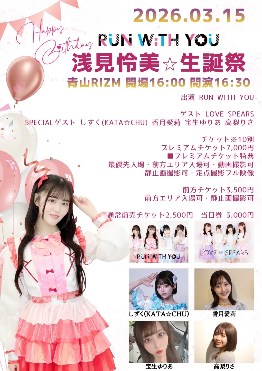 出演者 RUN WiTH YOU / LOVE SPEARS / しずく(KATA☆CHU) / 香月愛莉 / 宝生ゆりあ / 高梨りさ