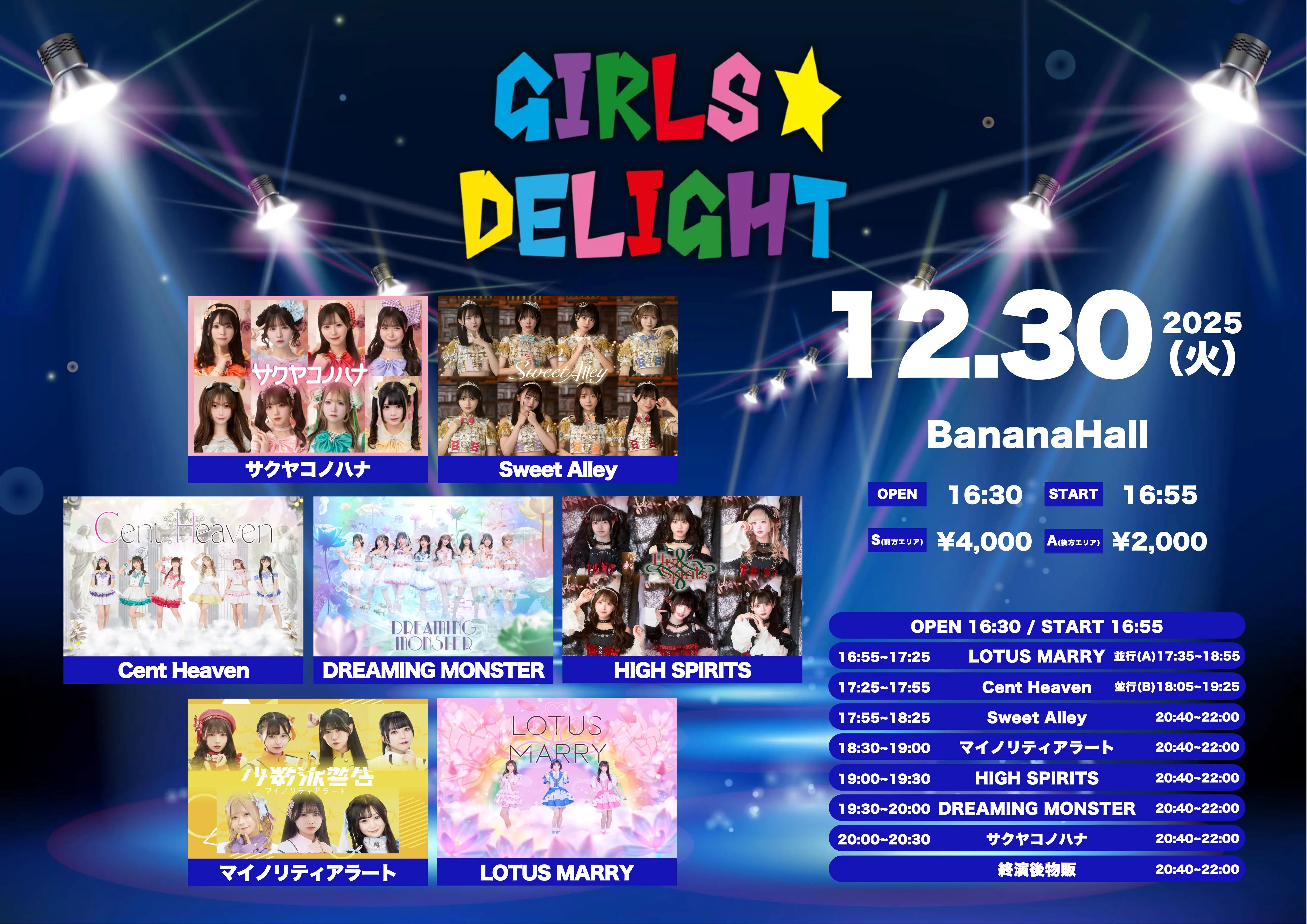 出演者 サクヤコノハナ / Sweet Alley / Cent Heaven / DREAMING MONSTER / HIGH SPIRITS / マイノリティアラート / LOTUS MARRY