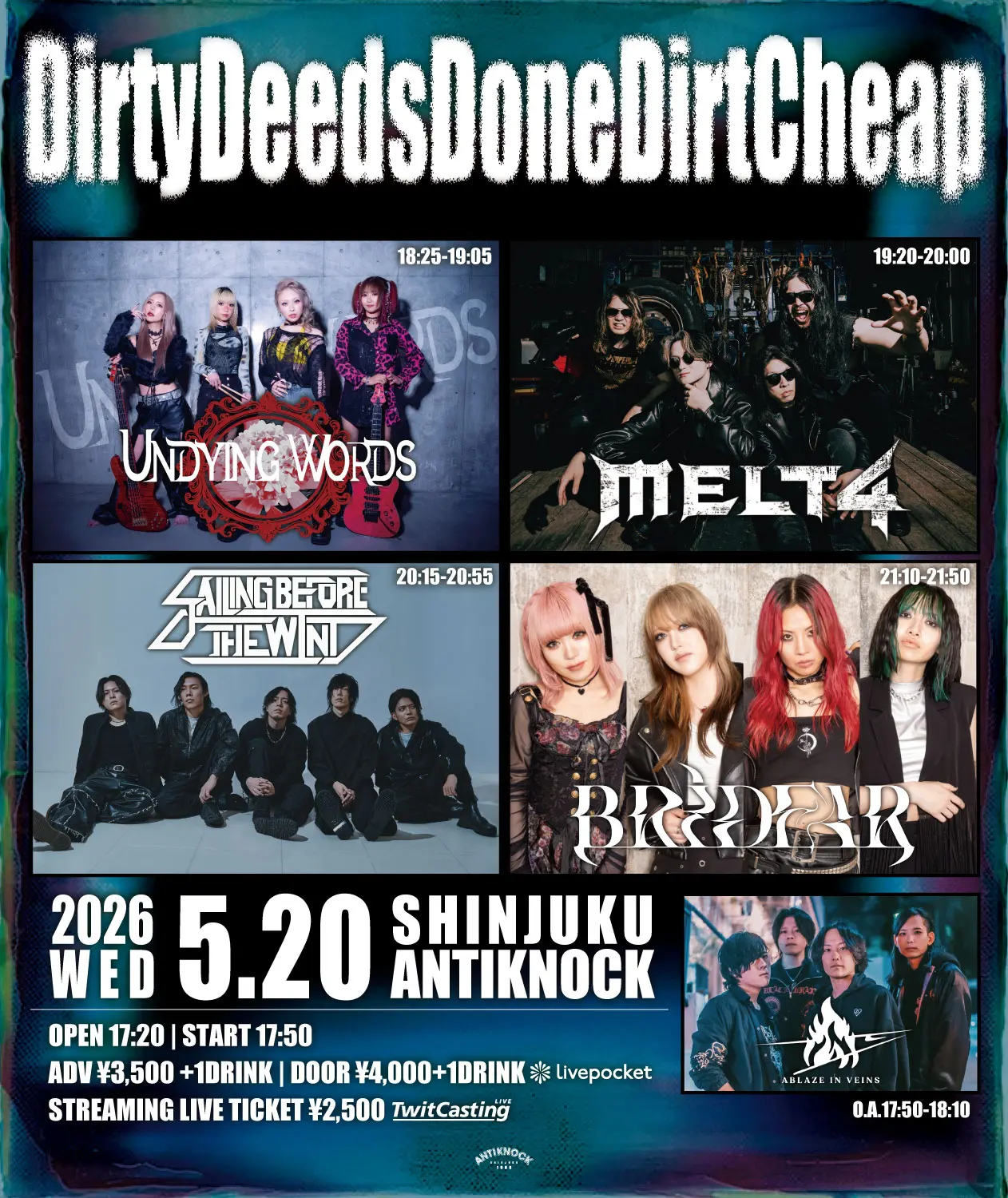 出演者 Sailing Before The Wind / BRIDEAR / MELT4 / UNDYING WORDS / ABLAZE IN VEINS