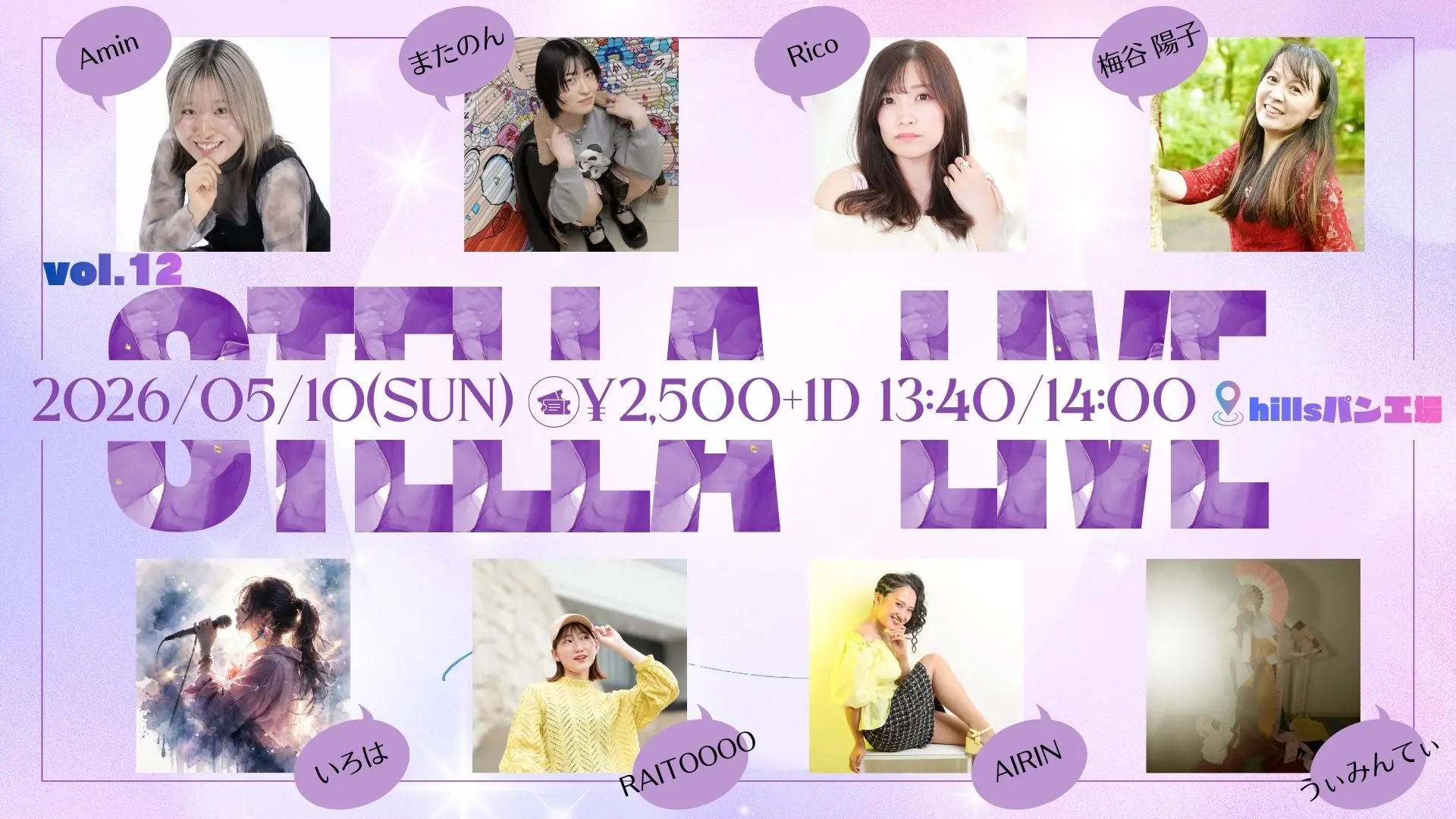 出演者 Rico / またのん / RAITOOOO / うぃみんてぃ / AIRIN / いろは / 梅谷 陽子 / Amin