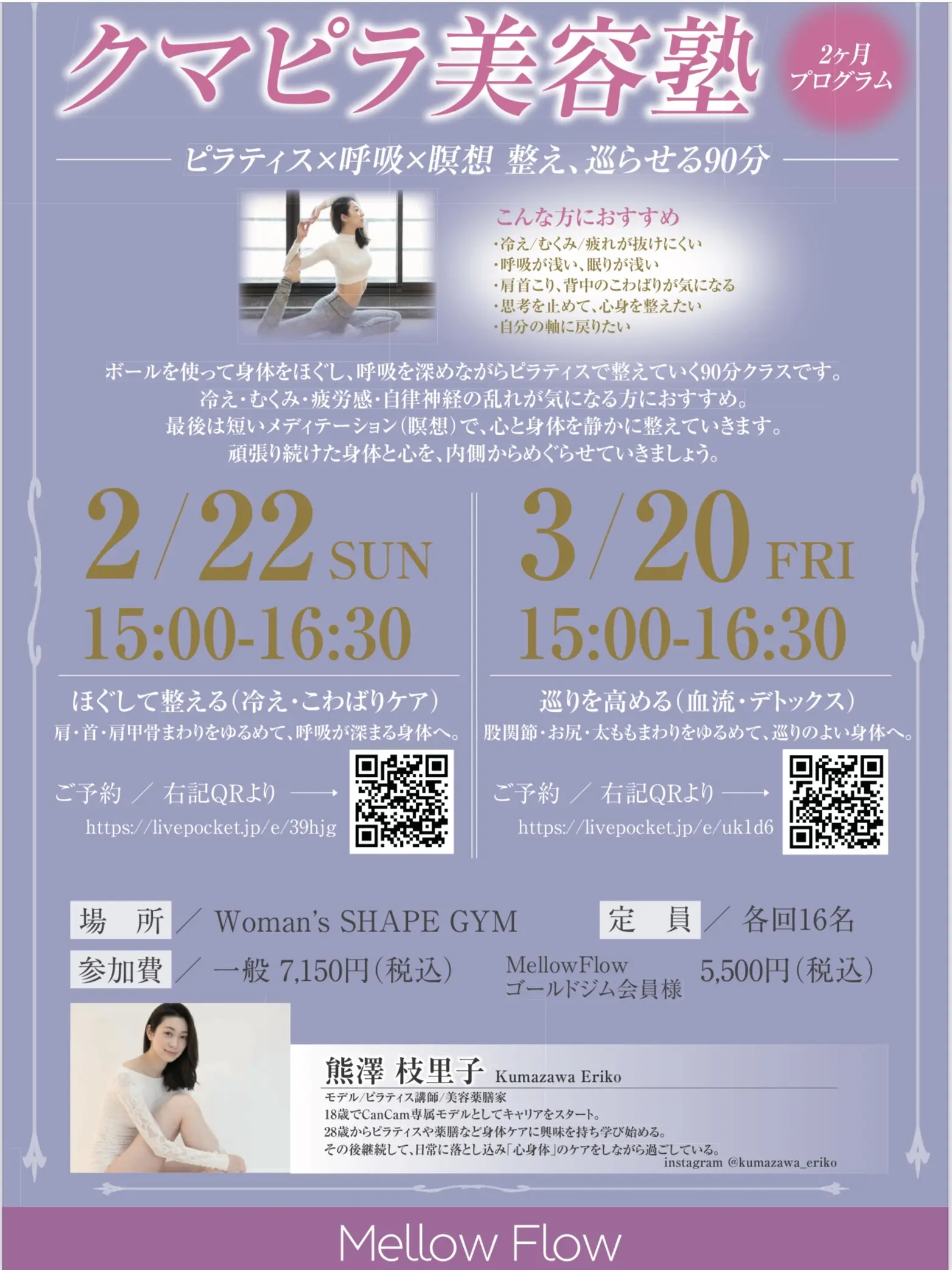 クマピラ美容塾― ピラティス×呼吸×瞑想 整え、巡らせる90分 ―