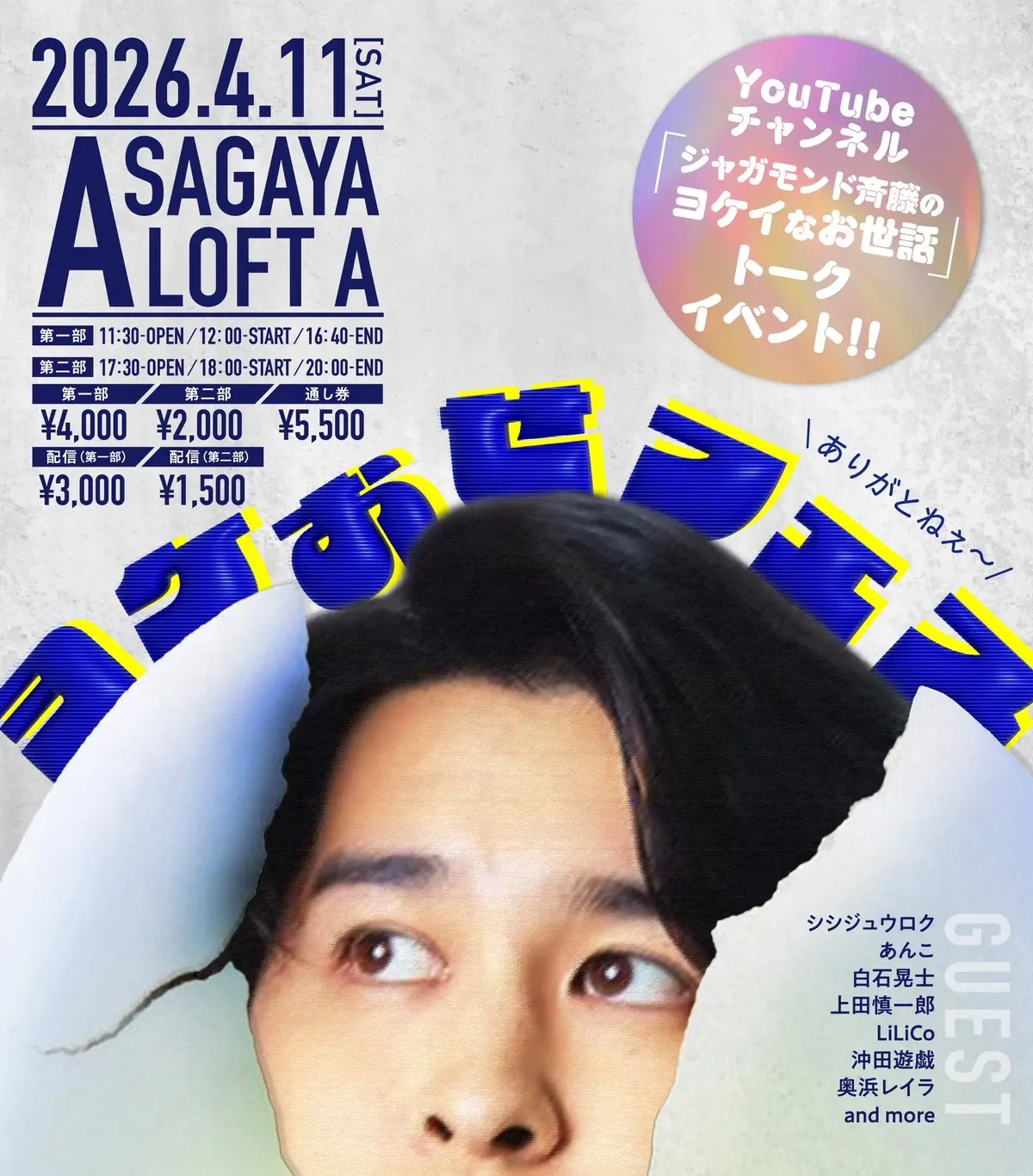 【第二部のみ】ヨケおせフェス 〜YouTubeチャンネル「ジャガモンド斉藤のヨケイなお世話」トークイベント〜