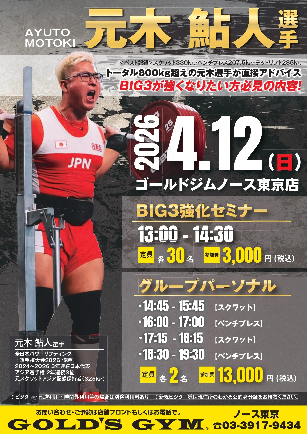 BIG3強化セミナー 元木鮎人【ゴールドジムノース東京】