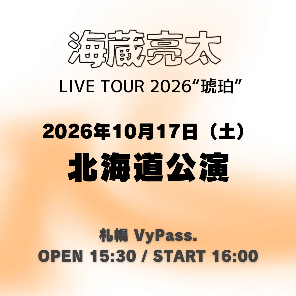 海蔵亮太 LIVE TOUR 2026 “琥珀”北海道公演