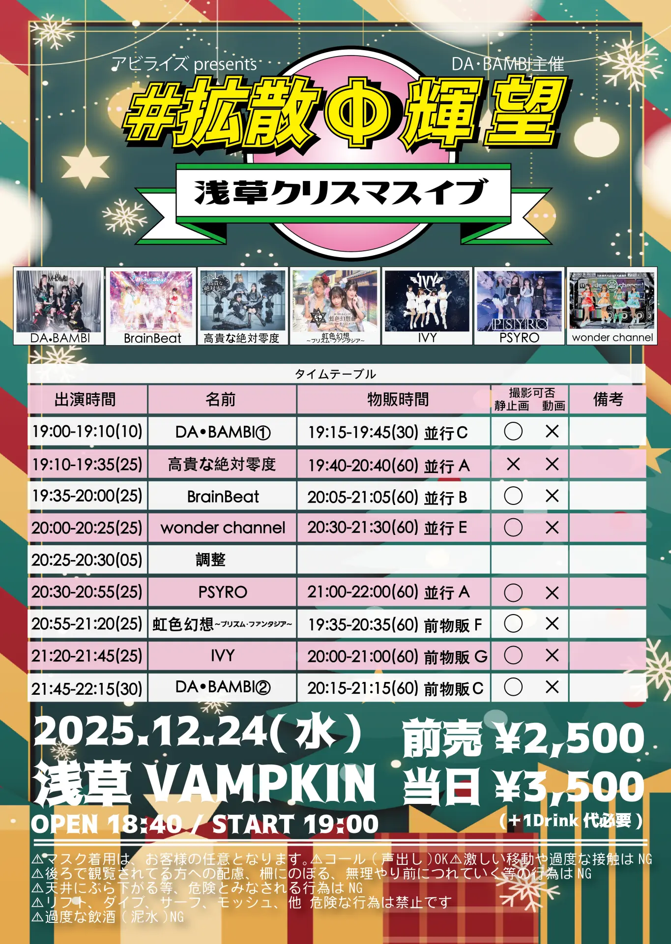 出演者 DA・BAMBI / BrainBeat / wonder channel / 虹⾊幻想〜プリズム・ファンタジア〜 / PSYRO / IVY / 高貴な絶対零度