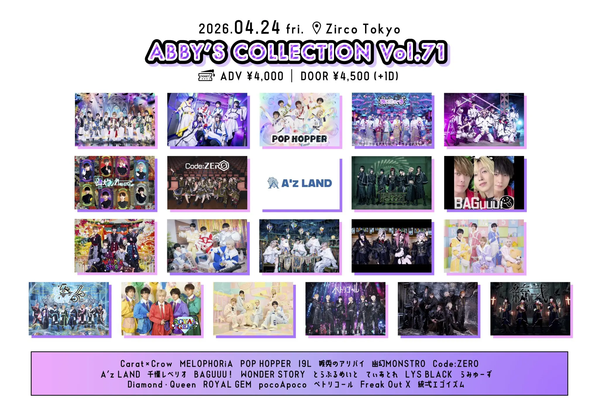 出演者 maleficium / HATENO / スキュラ / 業-カルマ- / ドゥラ・ムーン / Dorothy∞Drop / Dusk / アカデミック・ホラー / 毒彩シンシャ / 未完成なリリム