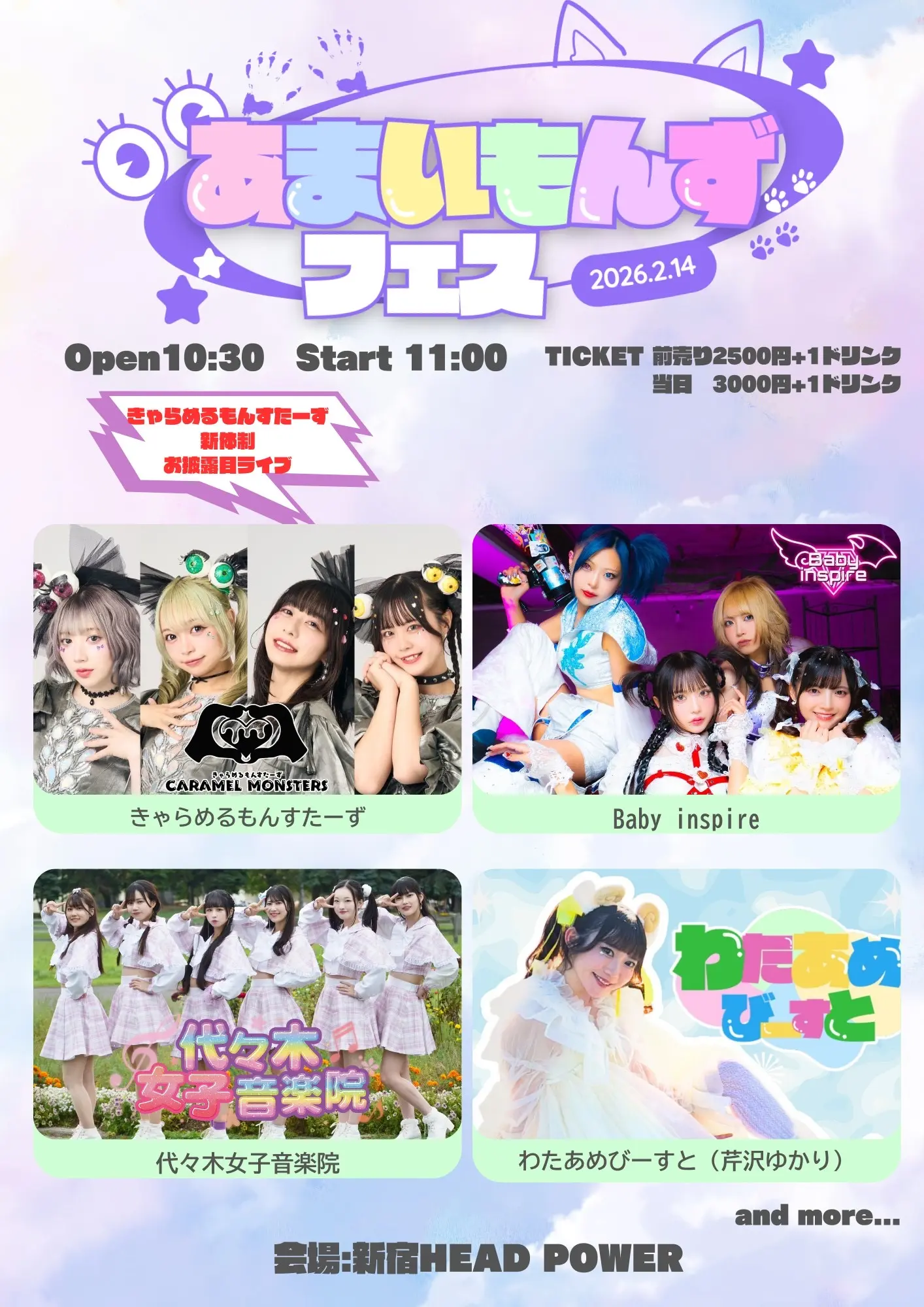 出演者 わたあめびーすと(芹沢ゆかり) / きゃらめるもんすたーず / 代々木女子音楽院 / Baby inspire