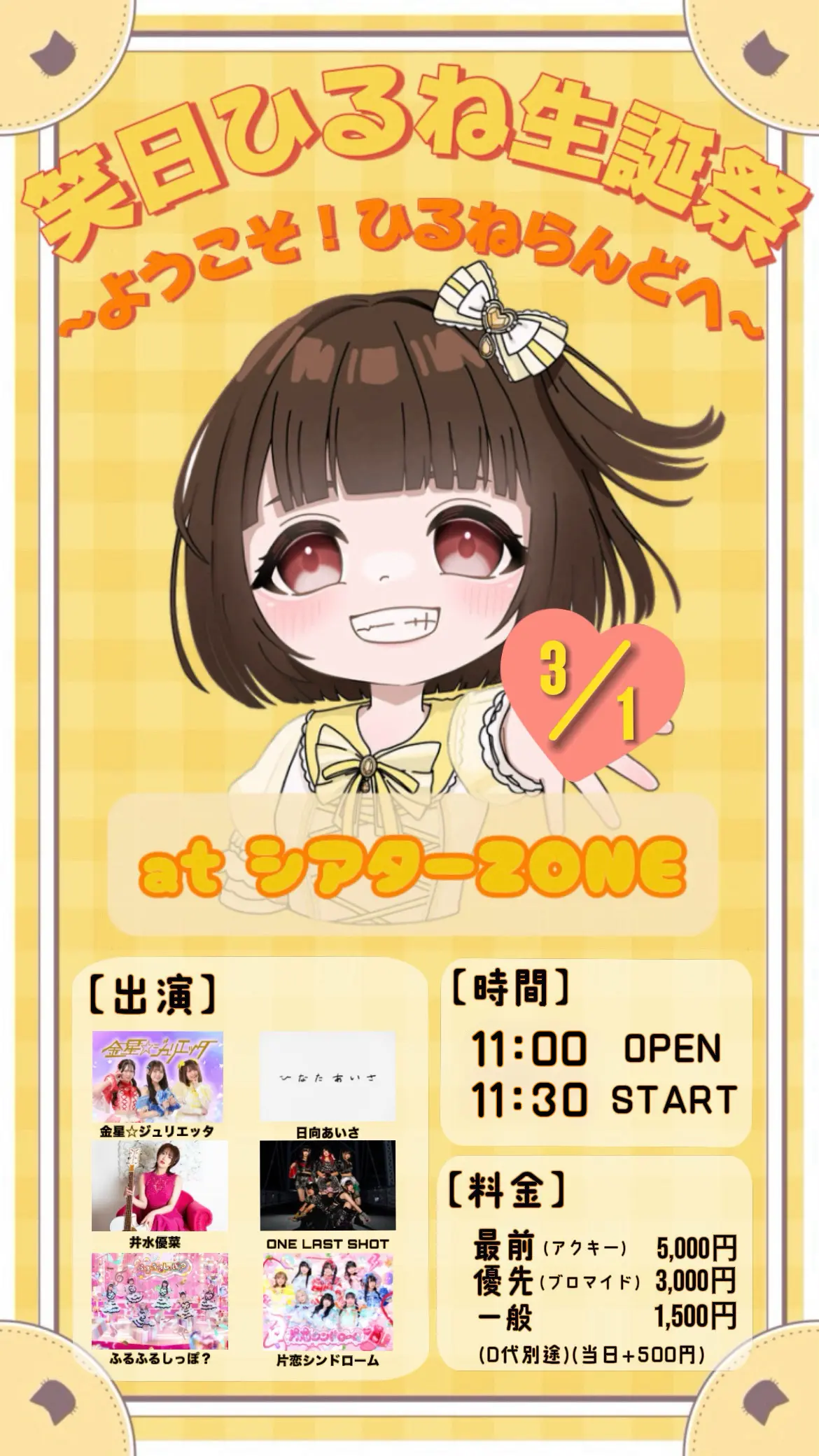 出演者 金星☆ジュリエッタ / ふるふるしっぽ? / 片恋シンドローム / 日向あいさ / 井水優菜 / ONE LAST SHOT