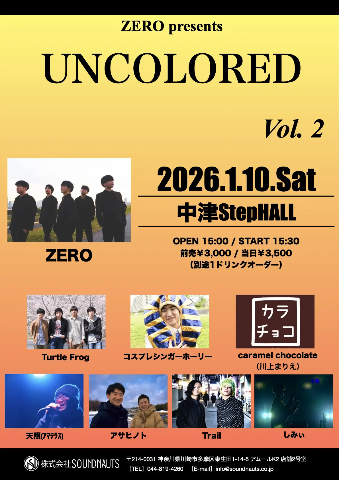 出演者 ZERO / Turtle Frog / コスプレシンガーホーリー / 天照(アマテラス) / caramel chocolate (川上まりえ) / アサヒノト / Trail / しみぃ