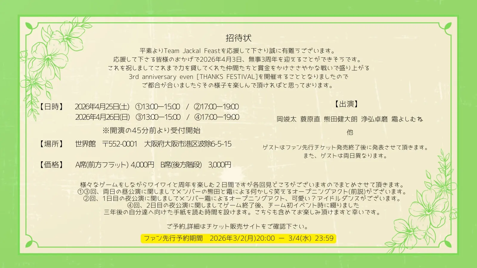 【ファン先行】Team Jackal Feast 3rd Anniversary Event [THANKS FESTIVAL]