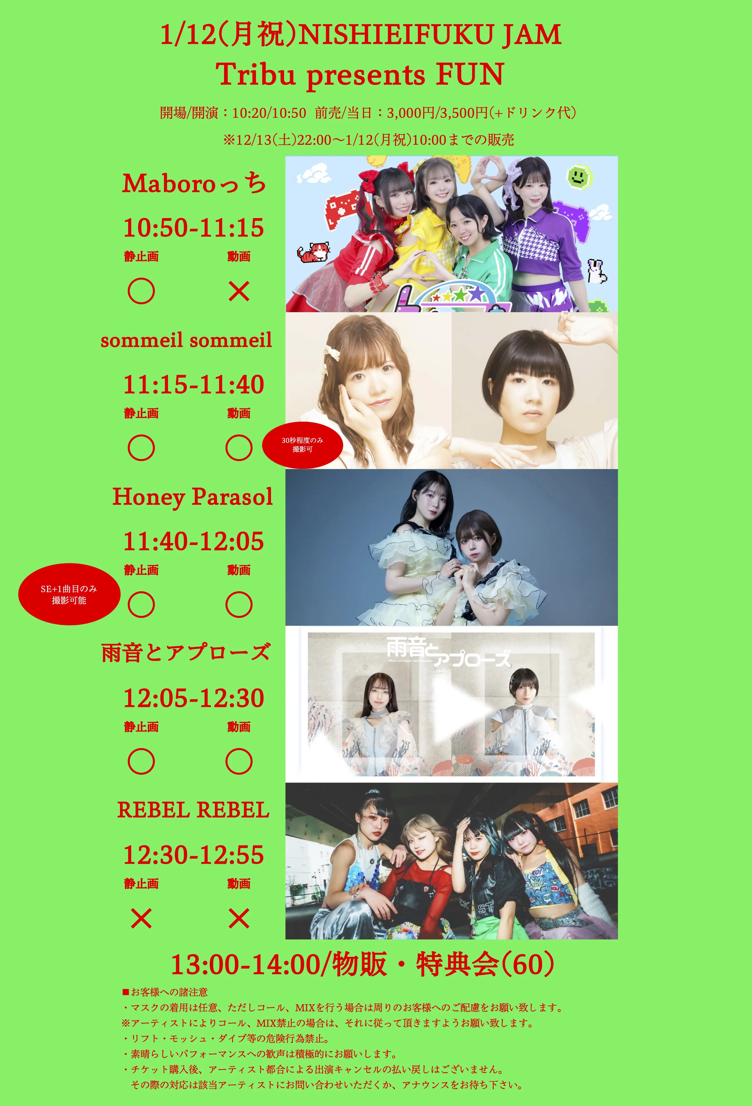 出演者 REBEL REBEL / Maboroっち / sommeil sommeil / Honey Parasol / 雨音とアプローズ