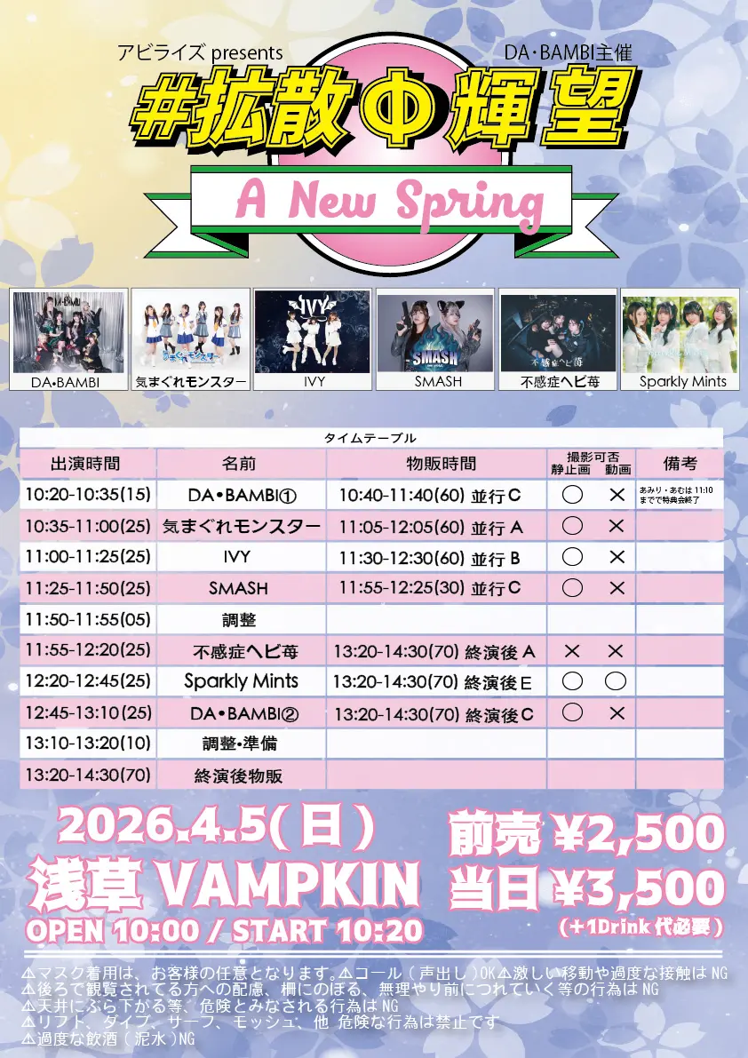 出演者 DA・BAMBI / IVY / SMASH / 不感症ヘビ苺 / 気まぐれモンスター / Sparkly Mints