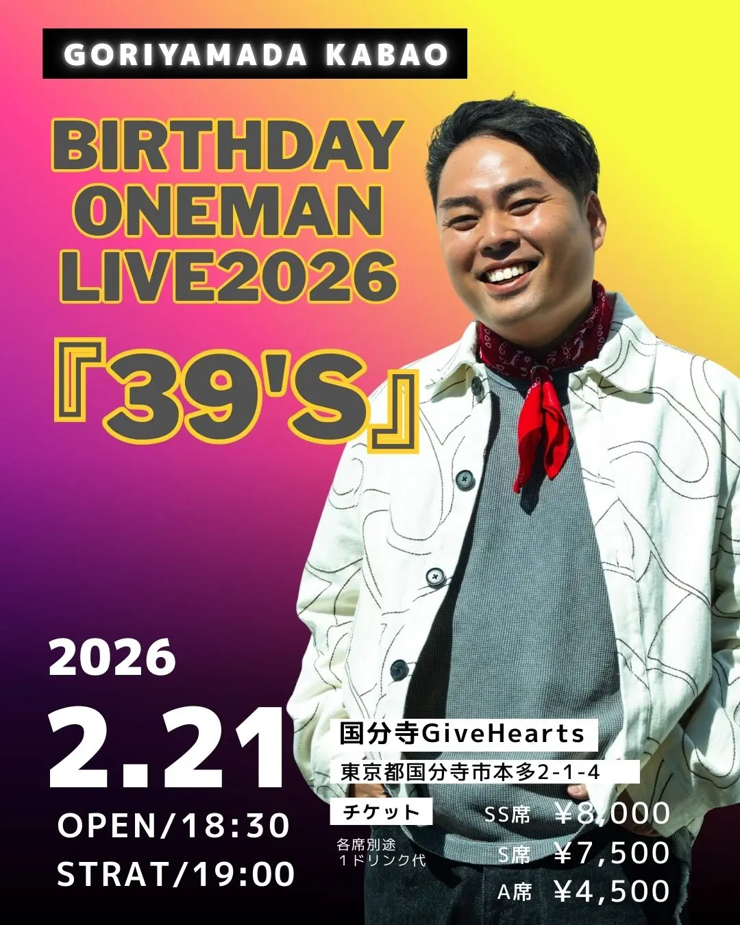 ゴリ山田カバ男 BIRTHDAY ONEMAN LIVE 2026『39's』
