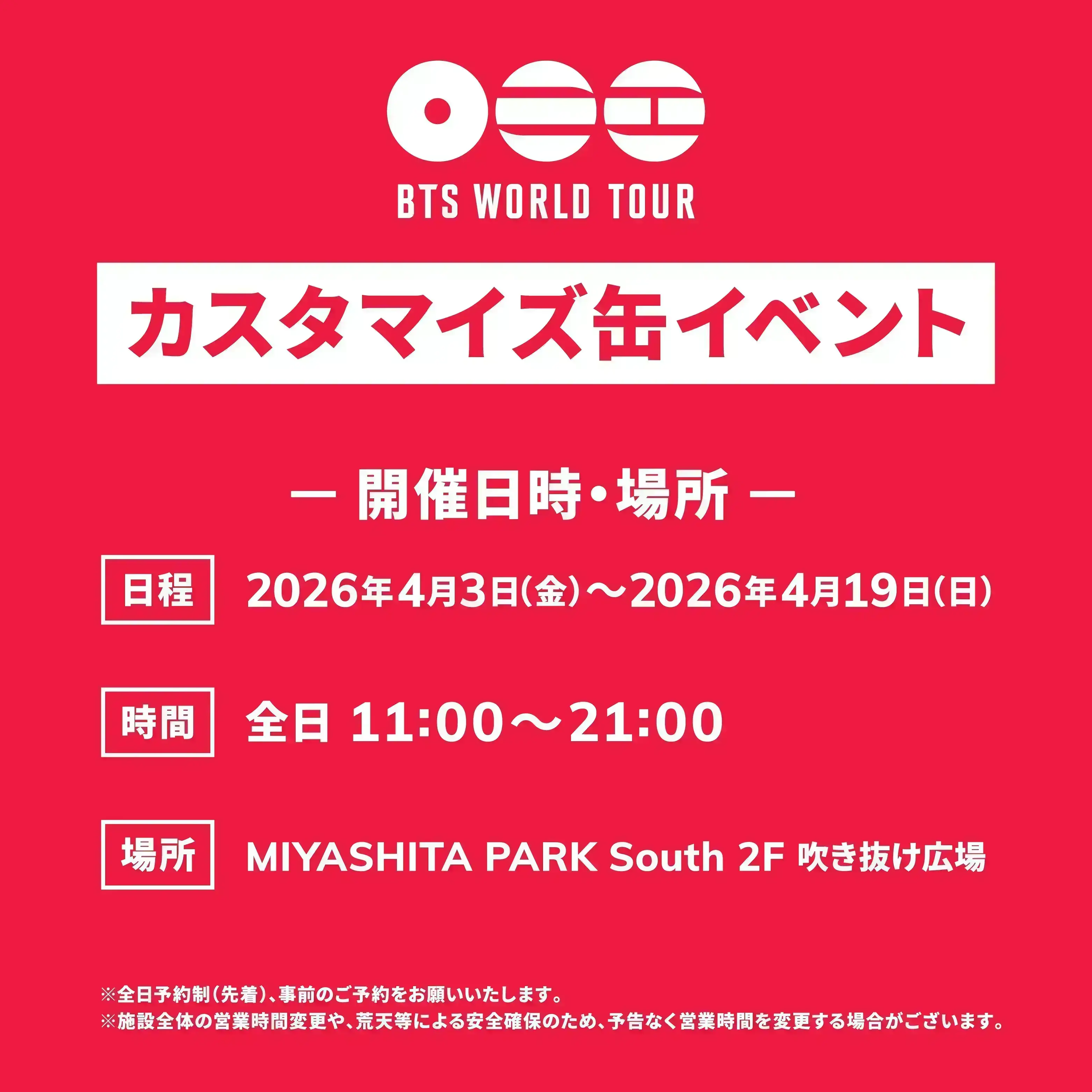 【4月8日入場分】『BTS WORLD TOUR 'ARIRANG' IN JAPAN』カスタマイズ缶イベント