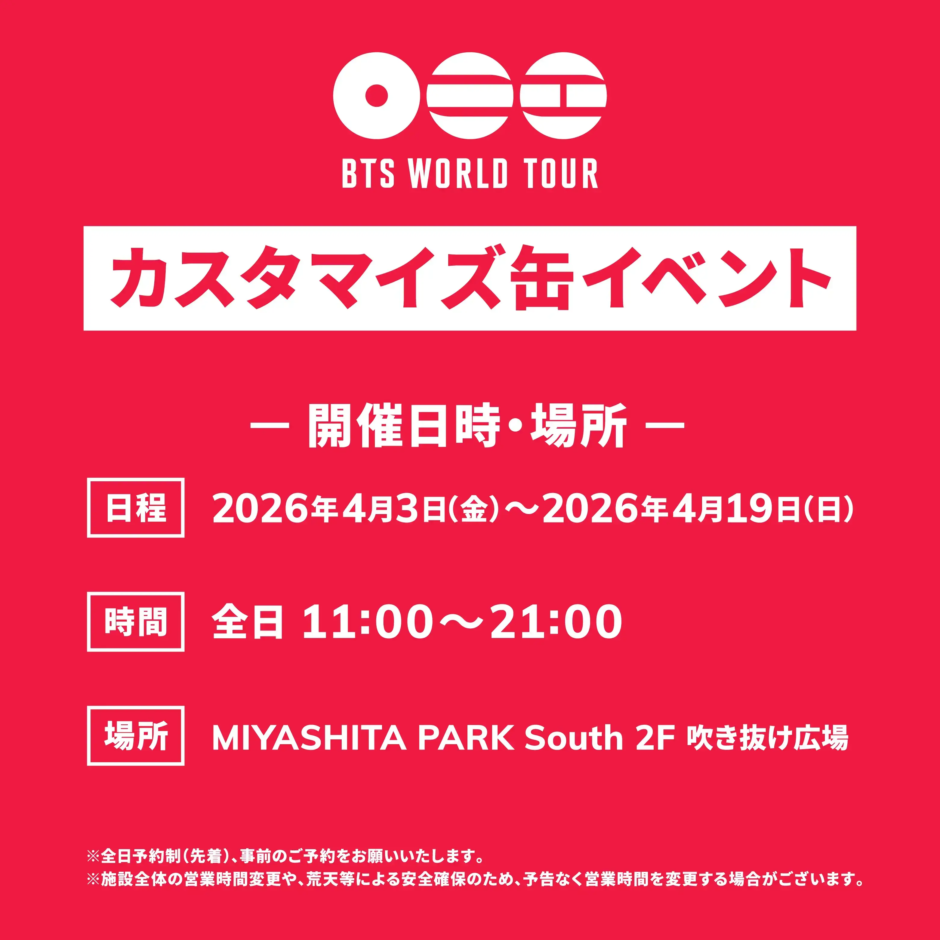 【4月19日入場分】『BTS WORLD TOUR 'ARIRANG' IN JAPAN』カスタマイズ缶イベント