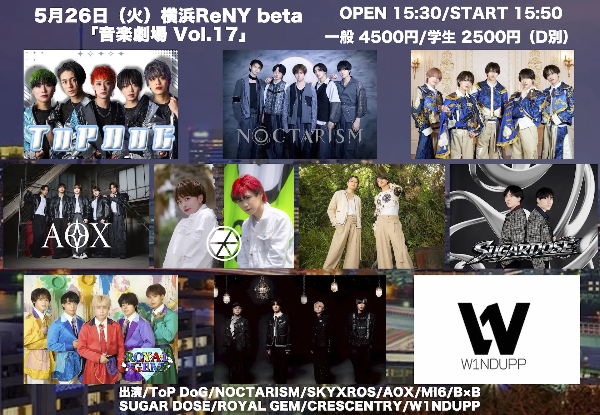 出演者 ROYAL GEM / ToP DoG / NOCTARISM / SKYXROS / AOX / MI6 / BxB / SUGAR DOSE / CRESCENTRY / W1NDUPP