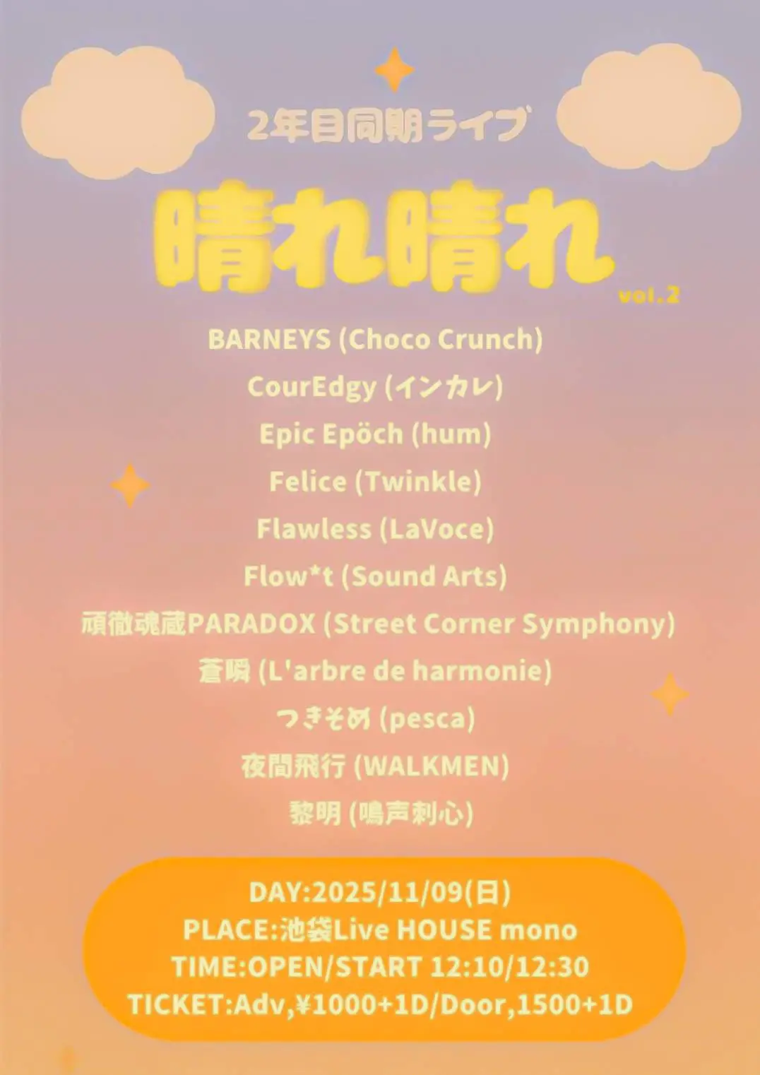 出演者 rabbit❁flower / UniZON / 統弌エゴイズム / tastyrose / BRAVETRIGGER / 臨壊Paradox / SAWAGE / BRIDΛL BELL / ジャンクロップ / BLACKSNOW / トピアマルピピ少年団 / 嫉兎のアリバイ