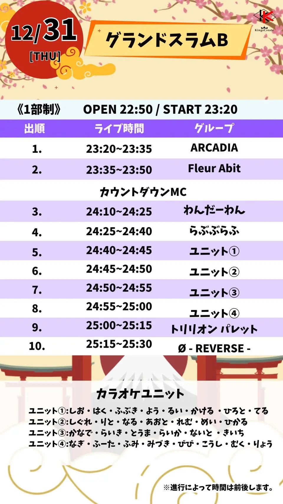 出演者 らぶぶらふ / わんだーわん / Ø -reverse- / あまいろめろでぃー / FleurAbit / トリリオンパレット / ARCADIA