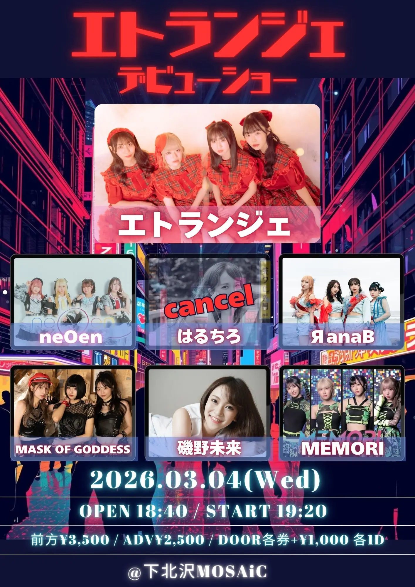 出演者 エトランジェ / 磯野未来 / はるちろ / MASK OF GODDESS / MEMORI / neOen / ЯanaB