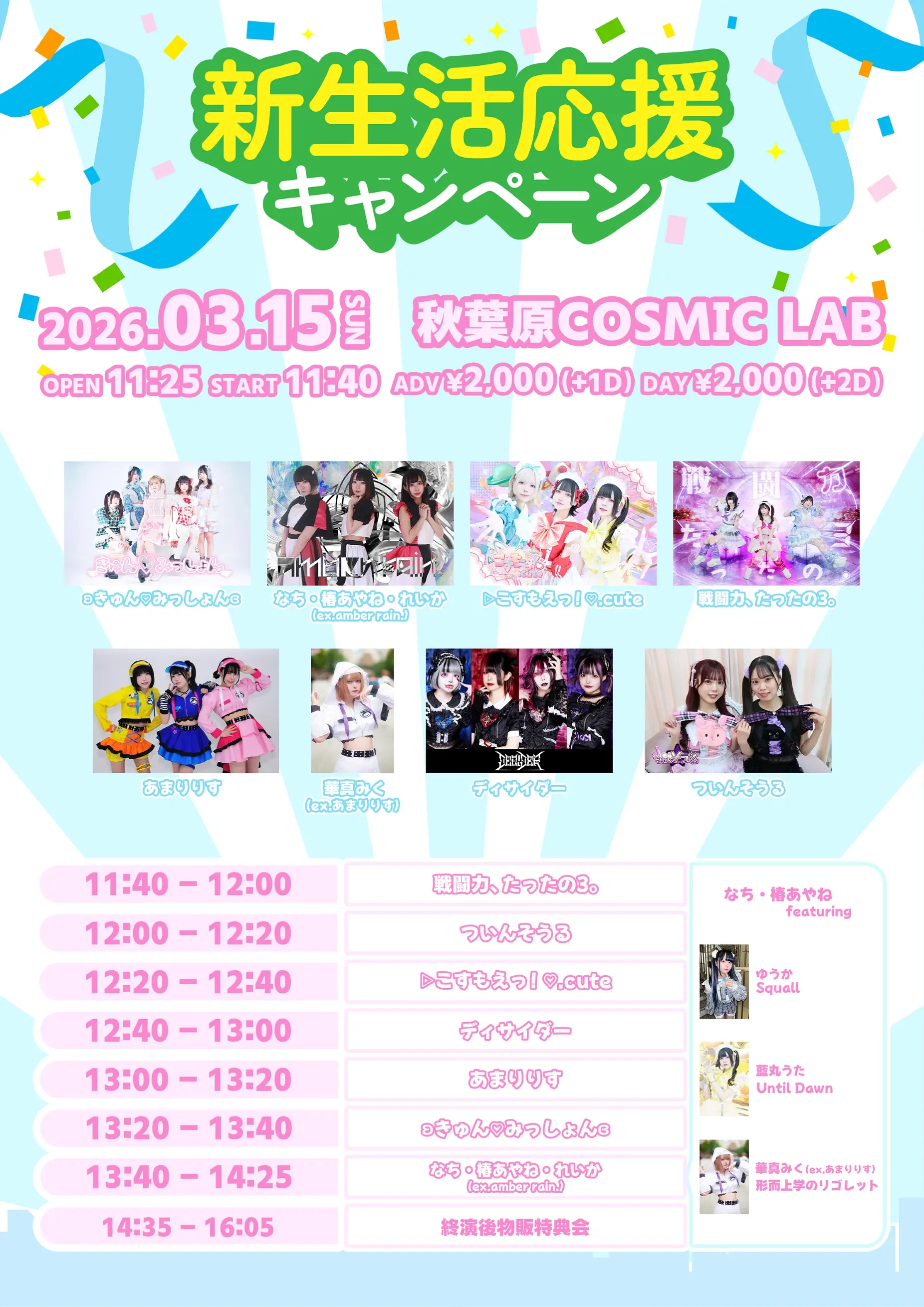出演者 ▷こすもえっ!♡.cute / ʚきゅん♡みっしょんɞ / あまりりす / ディサイダー / amber rain. / 華真みく / ついんそうる / 戦闘力、たったの3