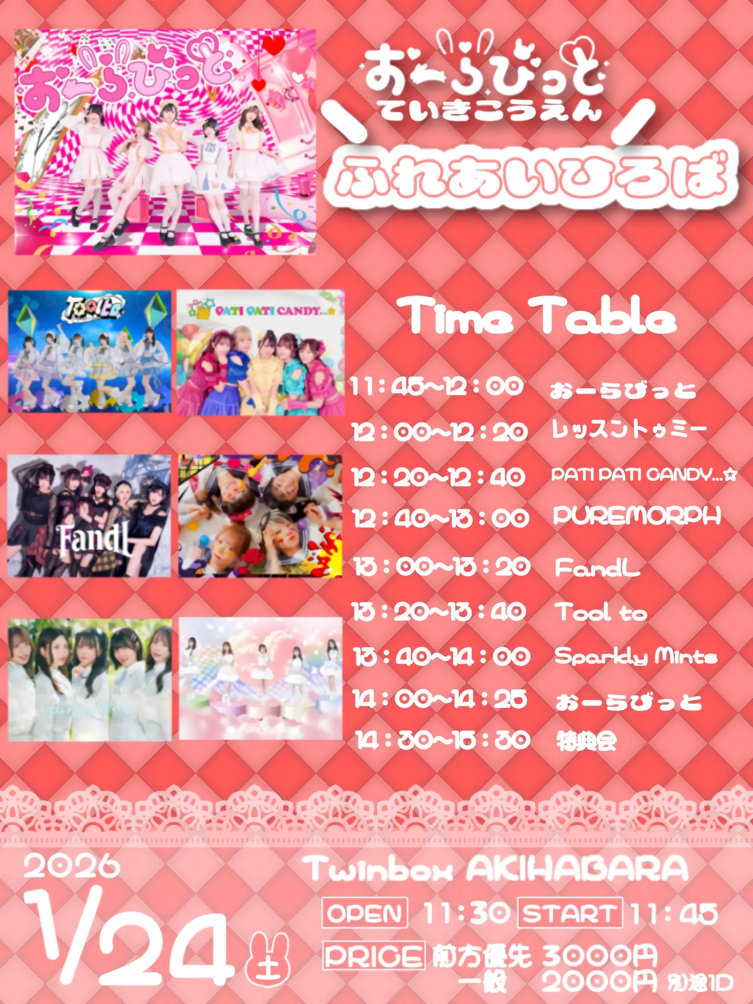 出演者 おーらびっと / Tool to / PUREMORPH / レッスントゥミー / Sparkly Mints / PATI PATI CANDY...☆ / FandL
