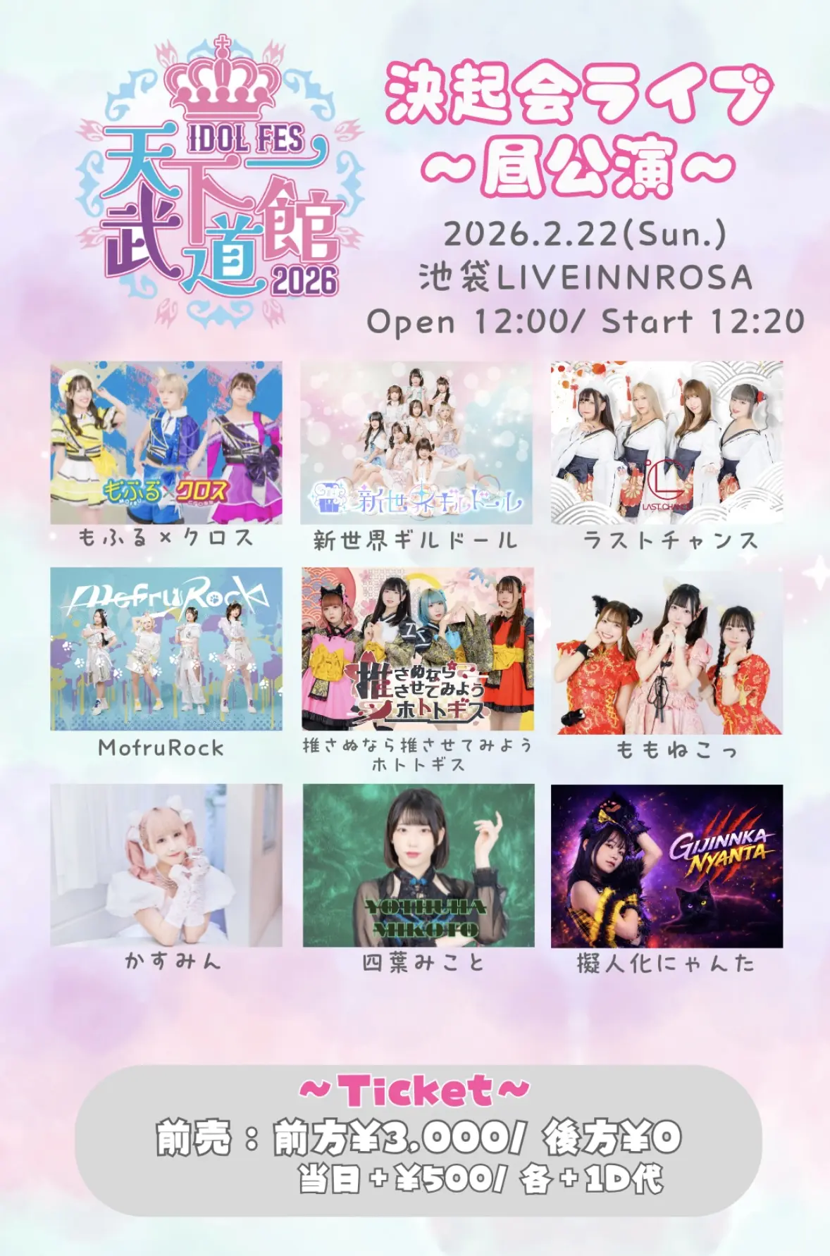 出演者 もふる×クロス / 新世界ギルドール / MofruRock / 推さぬなら推させてみようホトトギス / かすみん / 擬人化にゃんた / ラストチャンス / 四葉みこと / ももねこっ