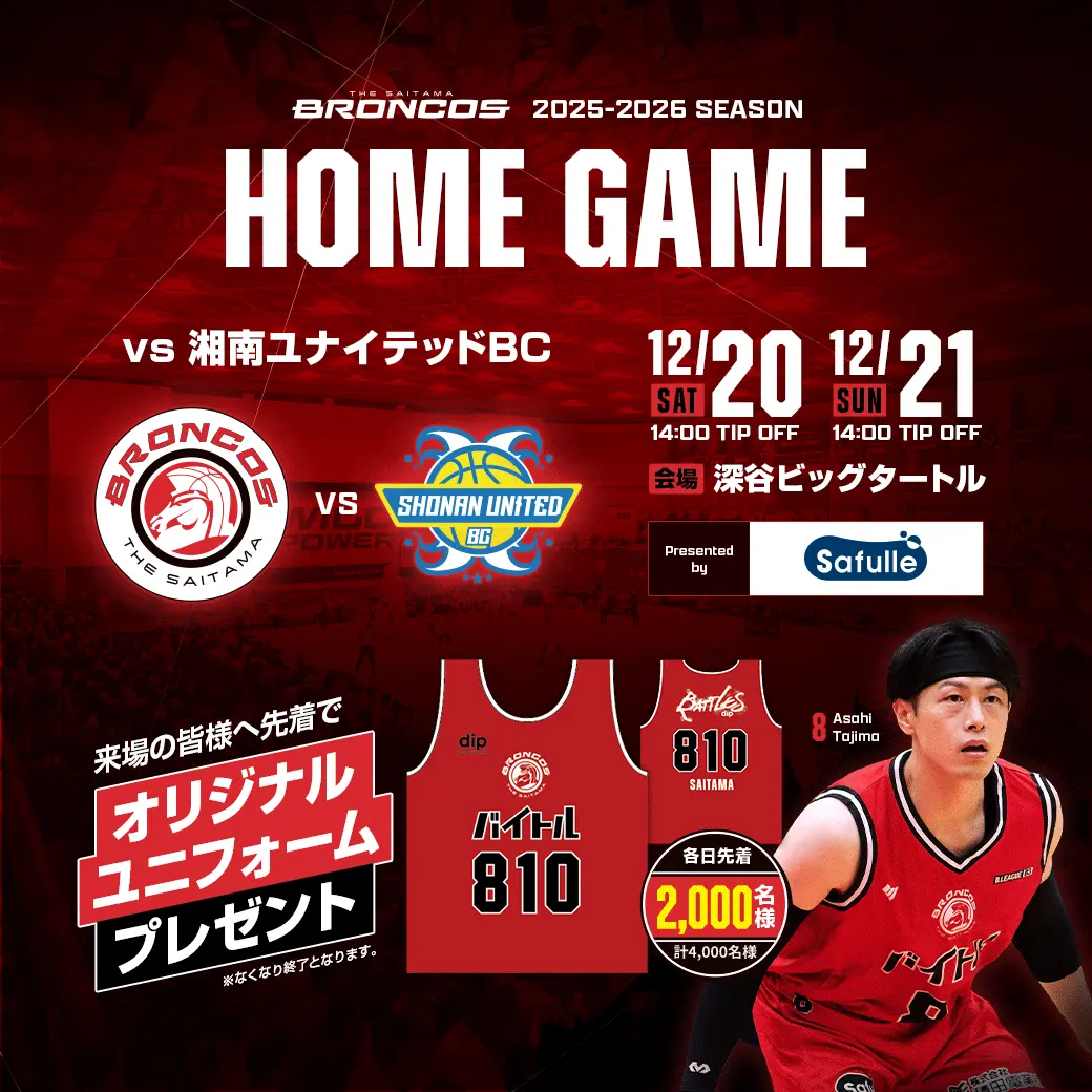 12/20(土) さいたまブロンコスvs湘南ユナイテッドBC 2025-26SEASON プロバスケットボールB3リーグ公式戦