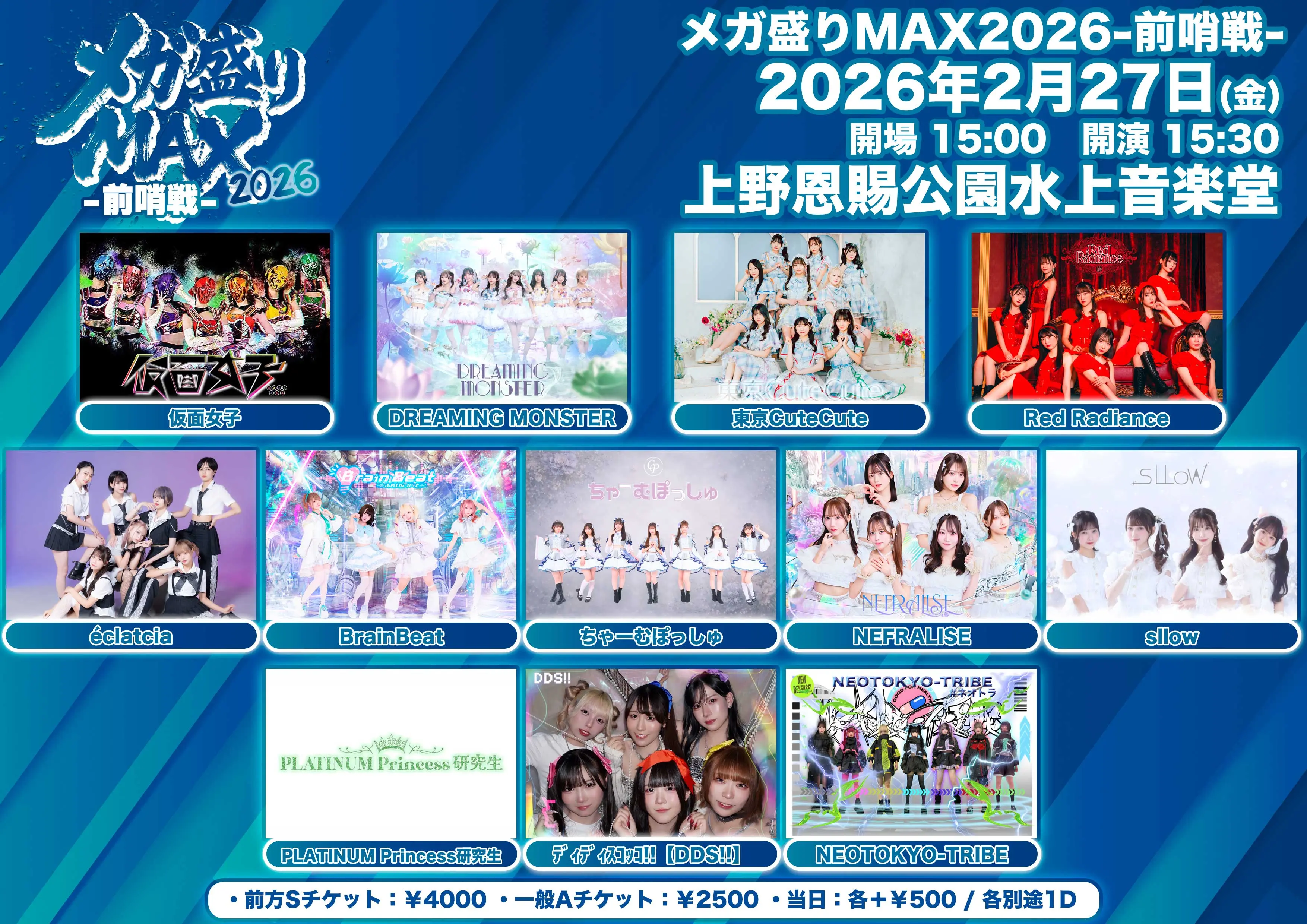 出演者 仮面女子 / DREAMING MONSTER / 東京CuteCute / Red Radiance / éclatcia / BrainBeat / ちゃーむぽっしゅ / NEFRALISE / PLATINUM Princess研究生 / ディディスコッコ!!【DDS!!】 / NEOTOKYO-TRIBE / SLLOW