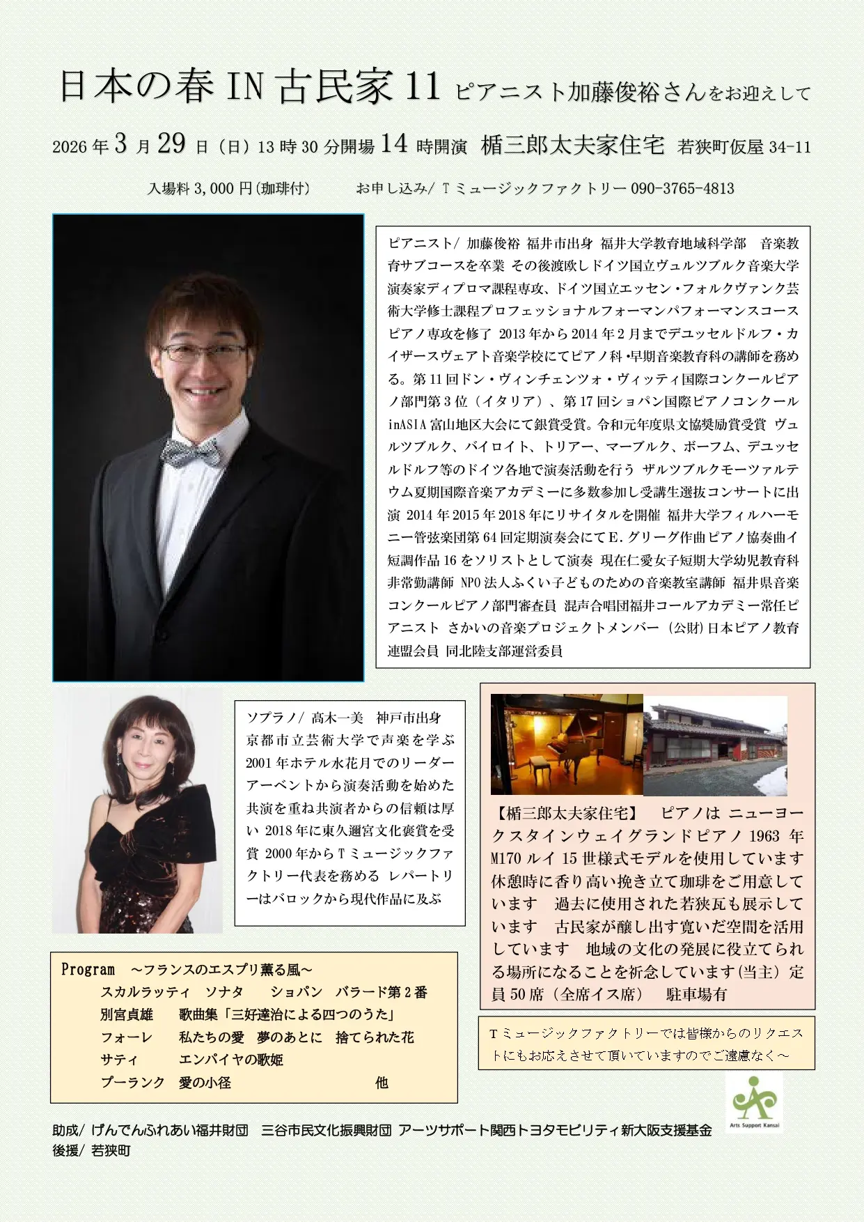日本の春IN古民家11~ピアニスト加藤俊裕さんをお迎えして~