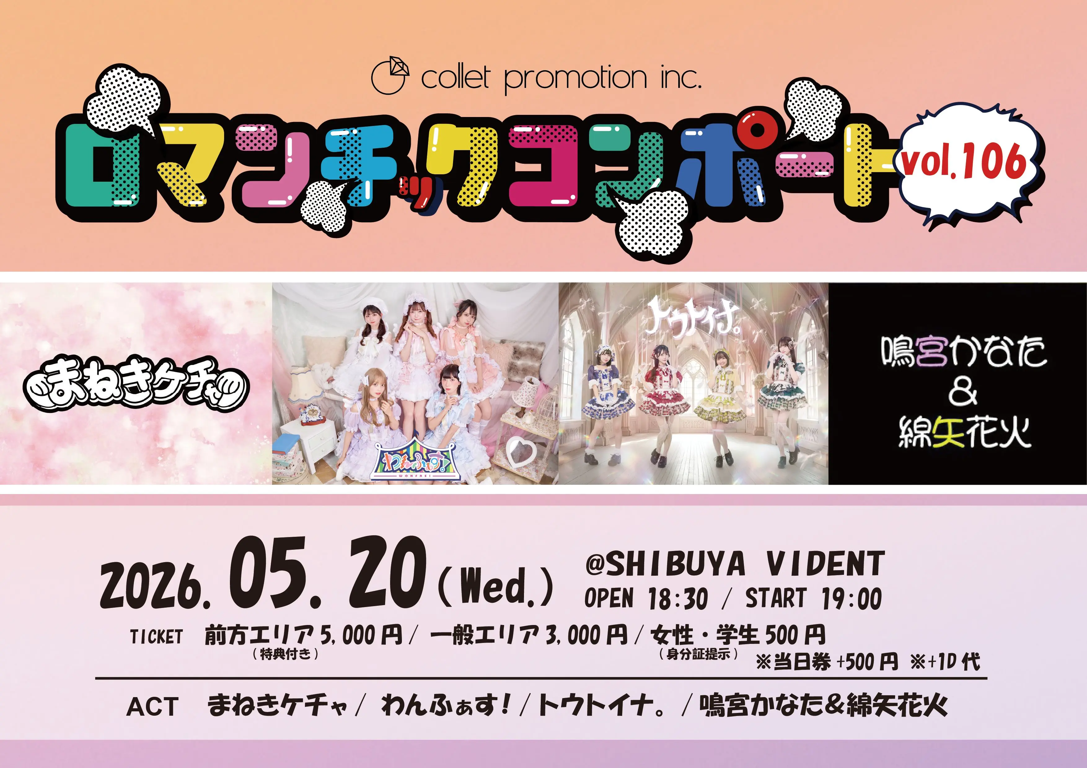 出演者 まねきケチャ / わんふぁす! / トウトイナ。 / 鳴宮かなた / 綿矢花火