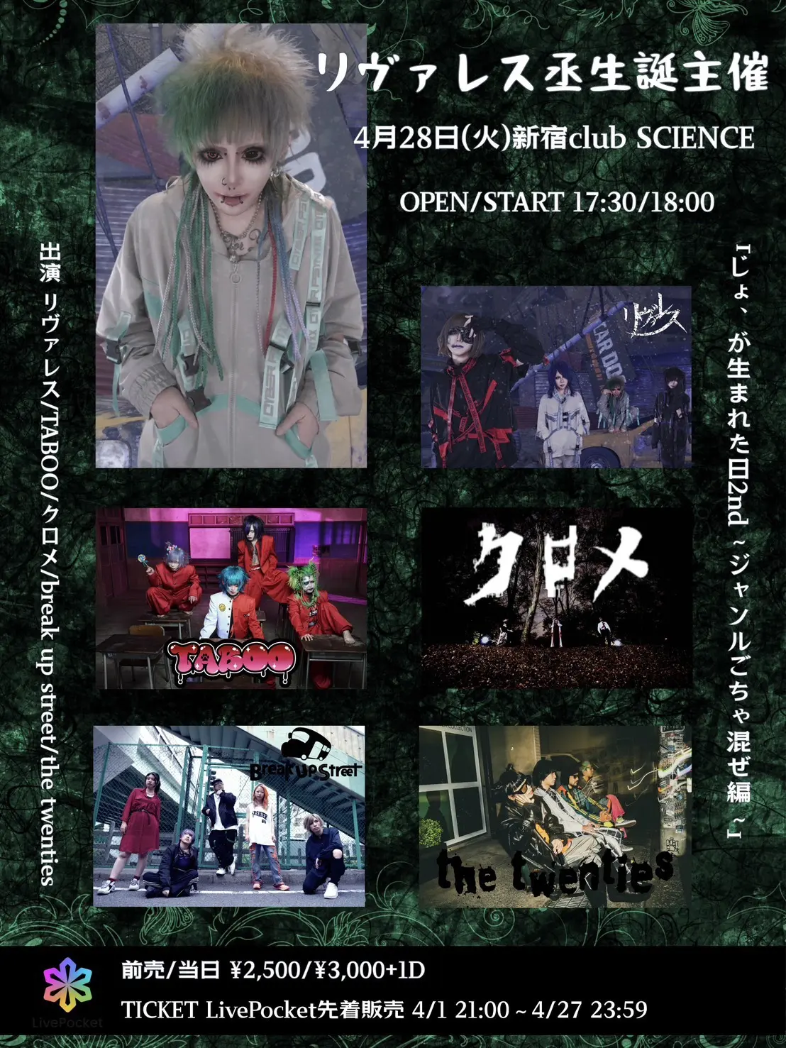 出演者 リヴァレス / TABOO / クロメ / break up street / the twenties