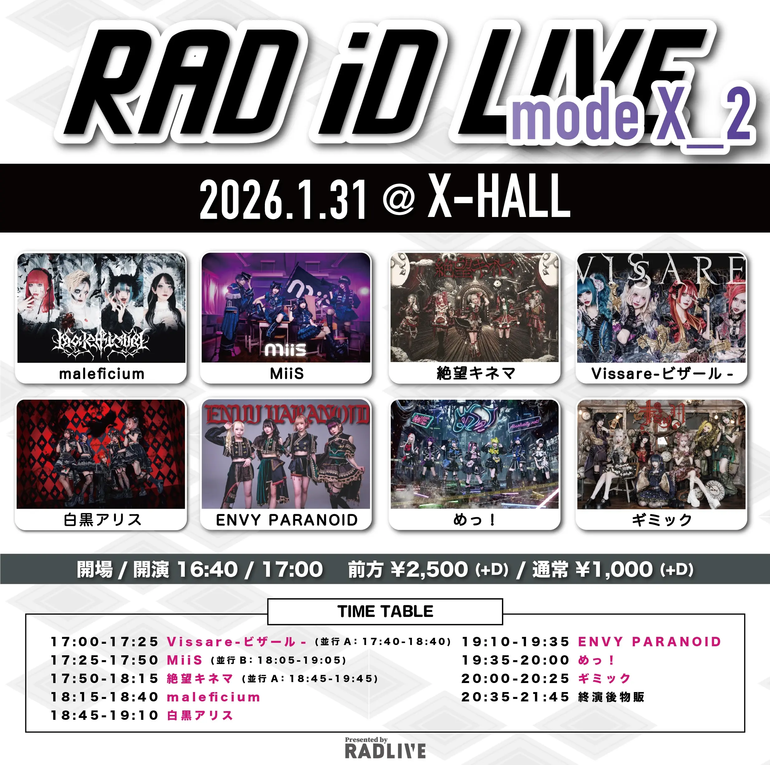 出演者 maleficium / MiiS / 絶望キネマ / Vissare-ビザール- / 白黒アリス / ENVY PARANOID / ギミック / めっ!